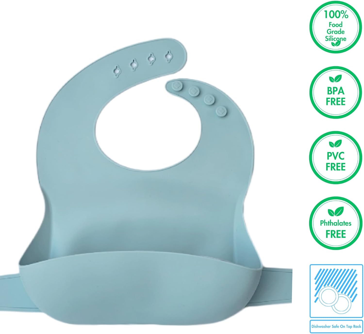 100% Food Grade Silicone Baby Bib with Adjustable Waist & Neck Straps, BPA Free, PVC Free, Durable, Large Pocket Food Catcher