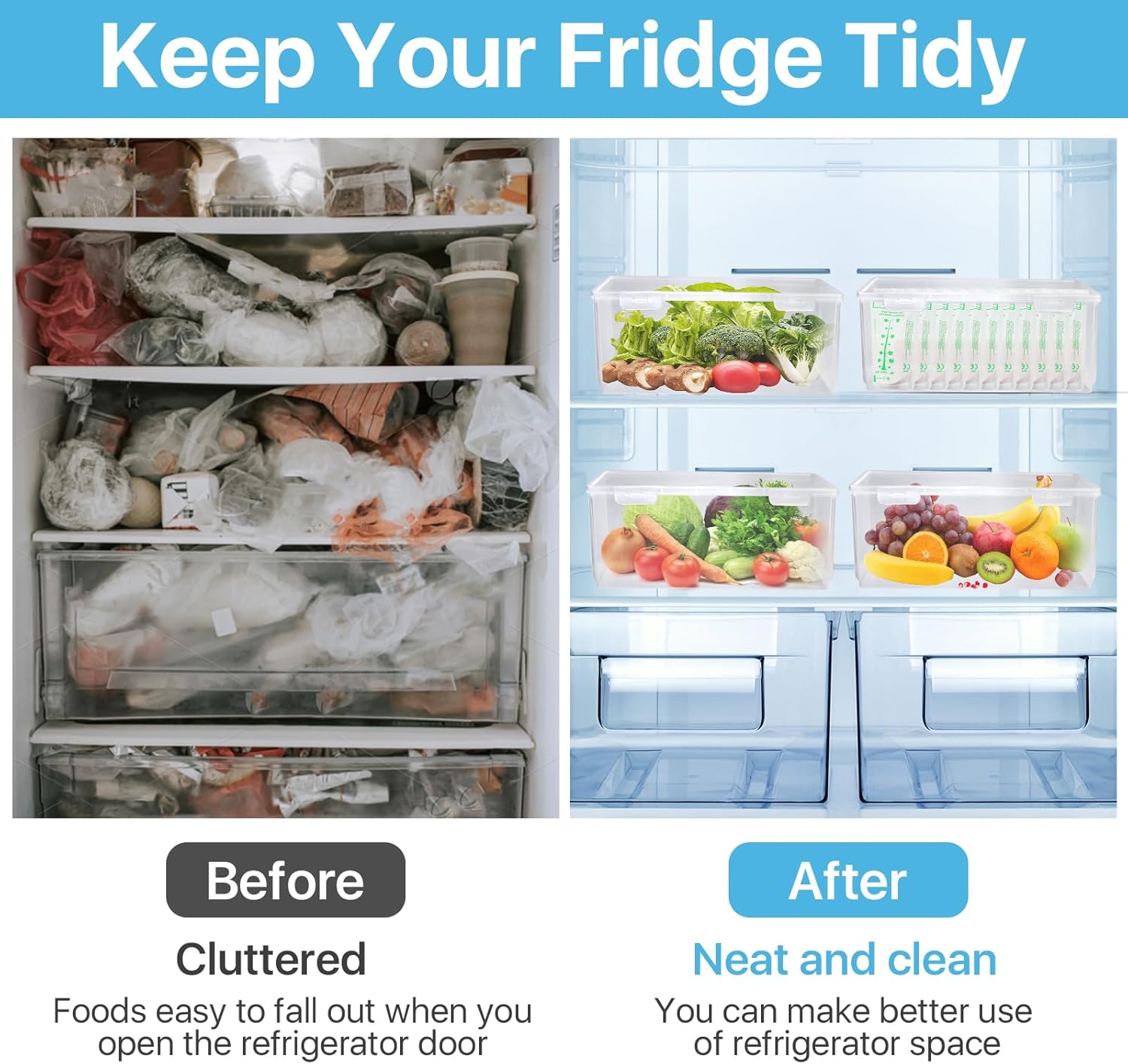 Space Saving Design: The fridge organizer container create a own independent and organized refrigerator environment for you. Stacking too much food in the refrigerator can cause food to fall out when opening the door,using clear storage bins is a good solution