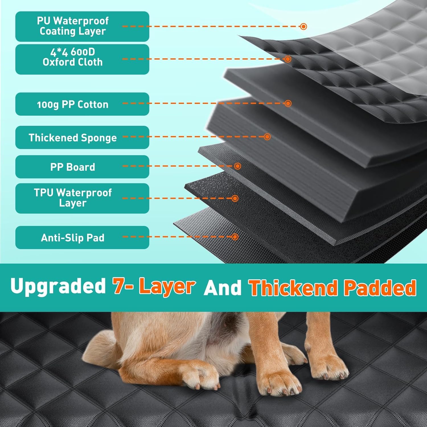 Back Seat Extender for Dogs,Hard Bottom Dog Car Seat Cover for Back Seat-Supports 400lbs,600D Heavy Duty Dog Hammock for Car Back Seat,100% Waterproof Pet Cover for Car SUV and Trucks