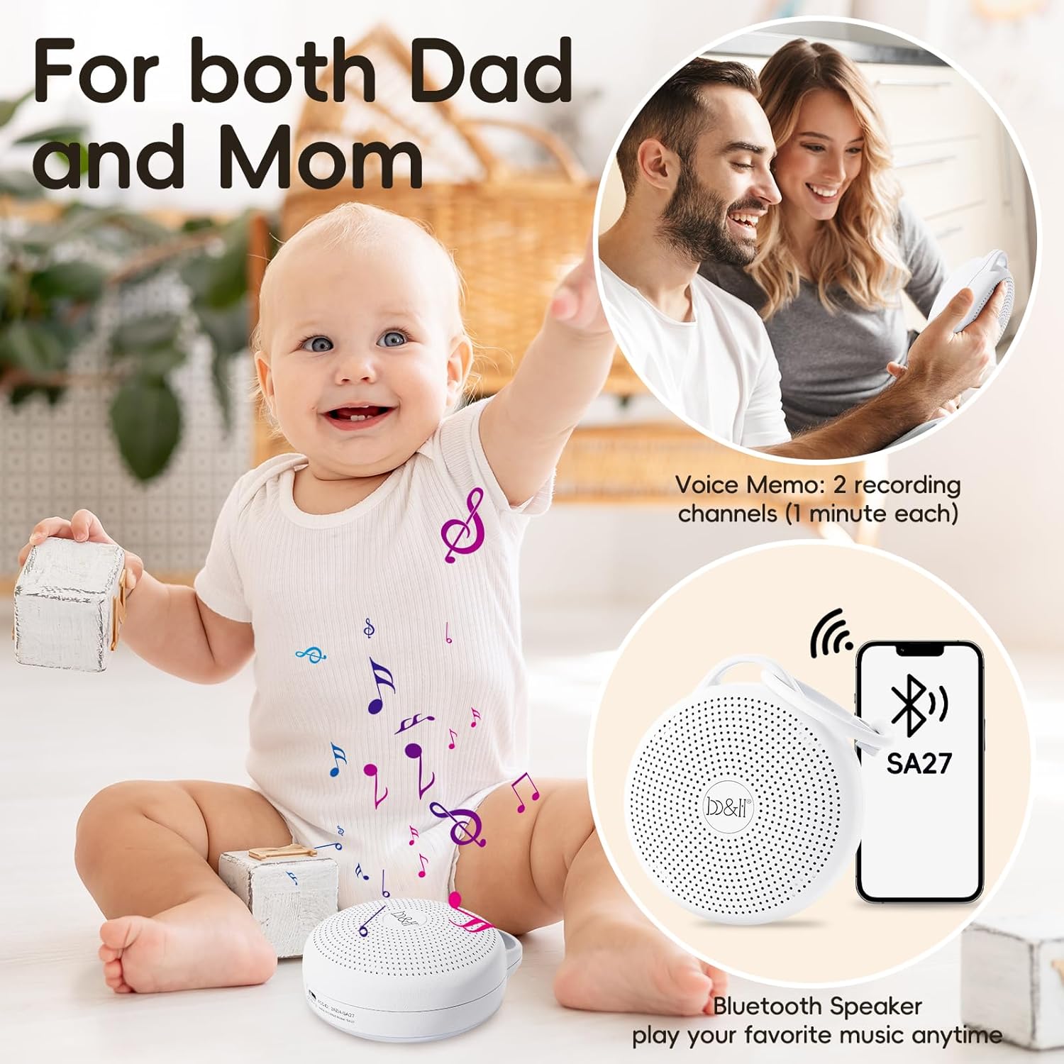 RECORDING FUNCTION & BLUETOOTH SPEAKER: Sound machine have two recording functions that can record the voices of dad and mom. Even if parents are not around, babies can hear familiar parental voices, which can soothe baby emotions and help baby fall asleep quickly. Recording 1 and Recording 2 can each record up to 1 minute. Just press button to record, save and playback. Bluetooth function can connect to your phone to play your favorite music. It’s a perfect present recorder for baby and parent