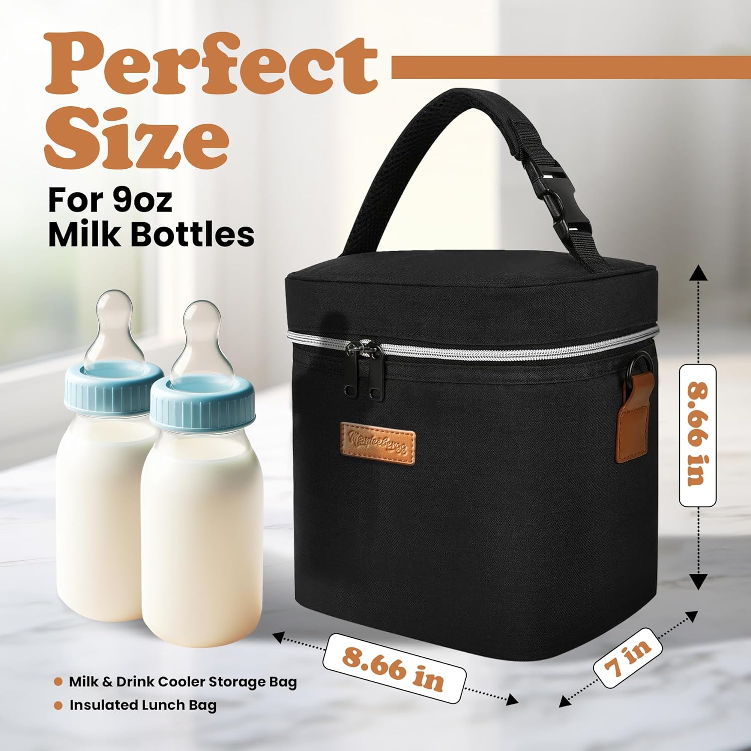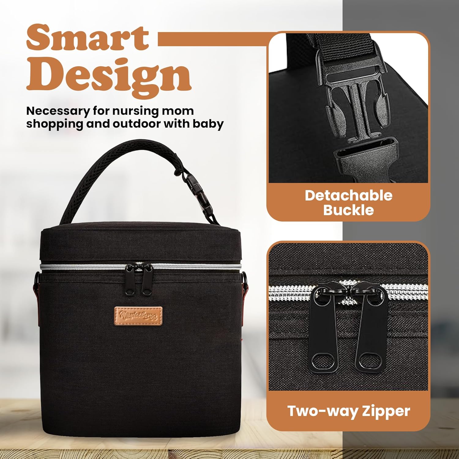 Breastmilk Cooler Bag for Travel with Reusable Ice Pack, 6 Bottle Holder, Insulated Warm and Cold Storage, Adjustable Storage Strap for Daycare, Picnic, Work, Shopping
