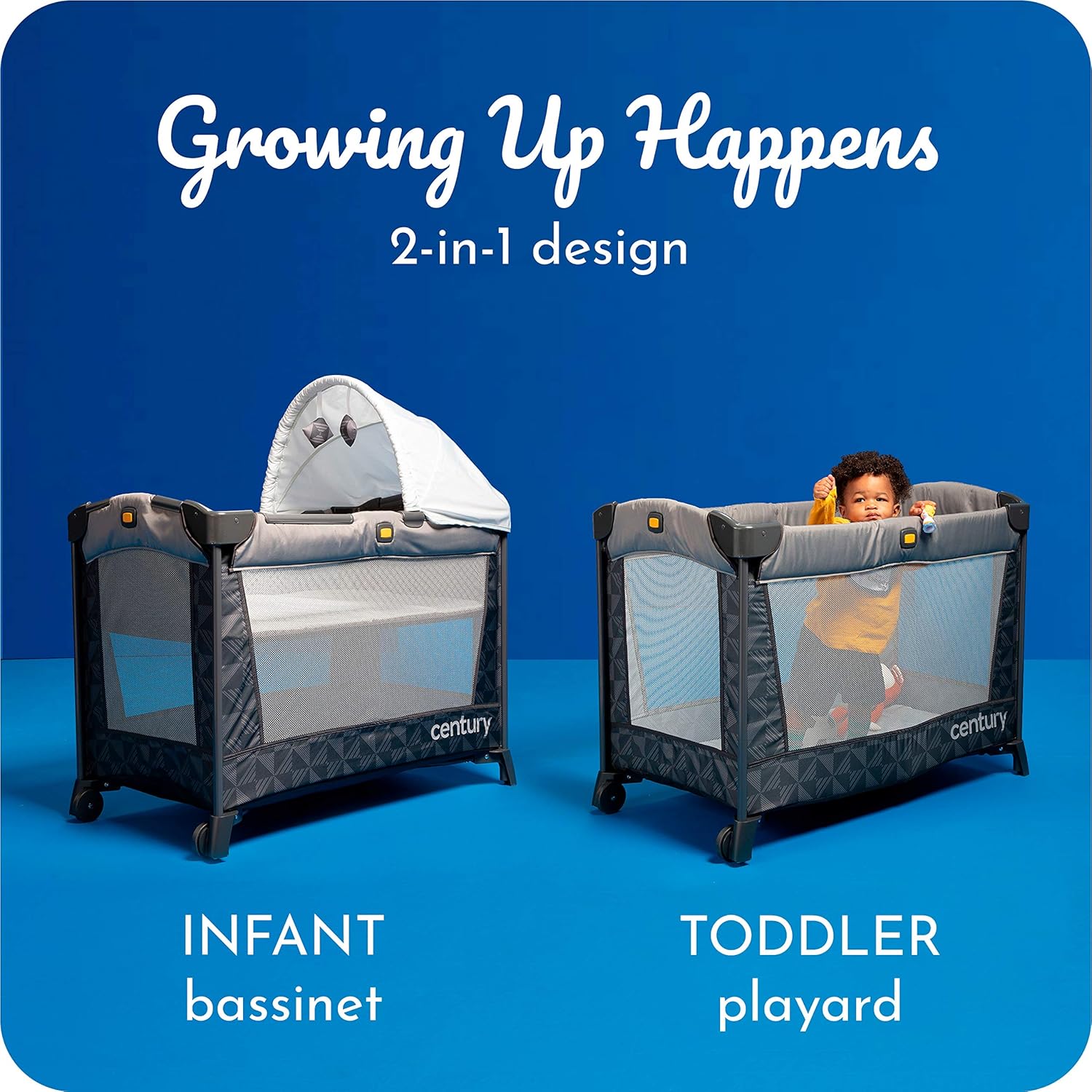 GROWING UP HAPPENS: 2-in-1 design—infant bassinet and toddler playard