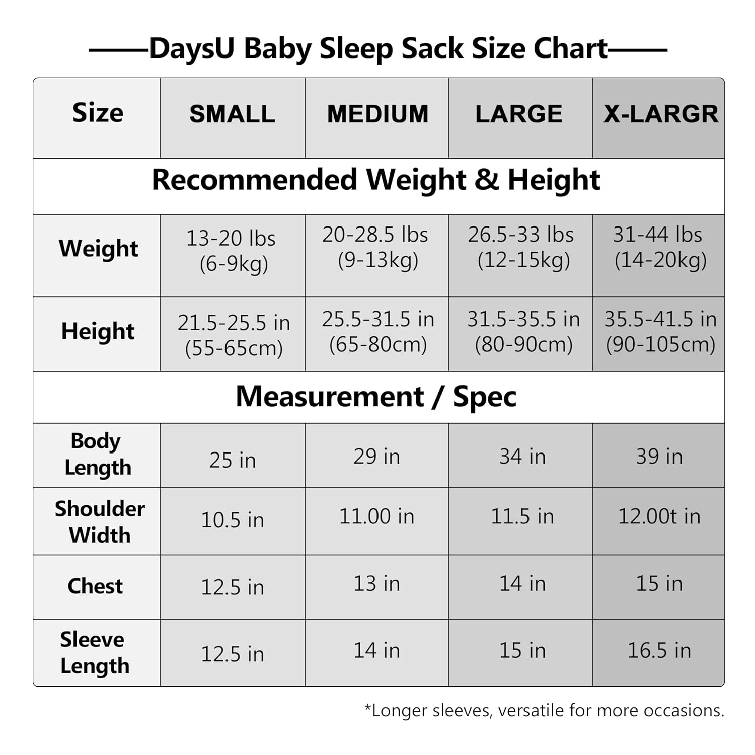 OEKO-TEX Certificate: DaysU long-sleeved fleece baby sleep sack is STANDARD 100 by OEKO-TEX certified, allowing direct contact with the sensitive skin of babies. Every component of our baby sleeping bag has been tested against numerous harmful substances, to ensure the health and safety of your angel. Washable and Easy Care. Machine wash cold with gentle cycle. Tumble dry low. Easy to wash urine and poop away.