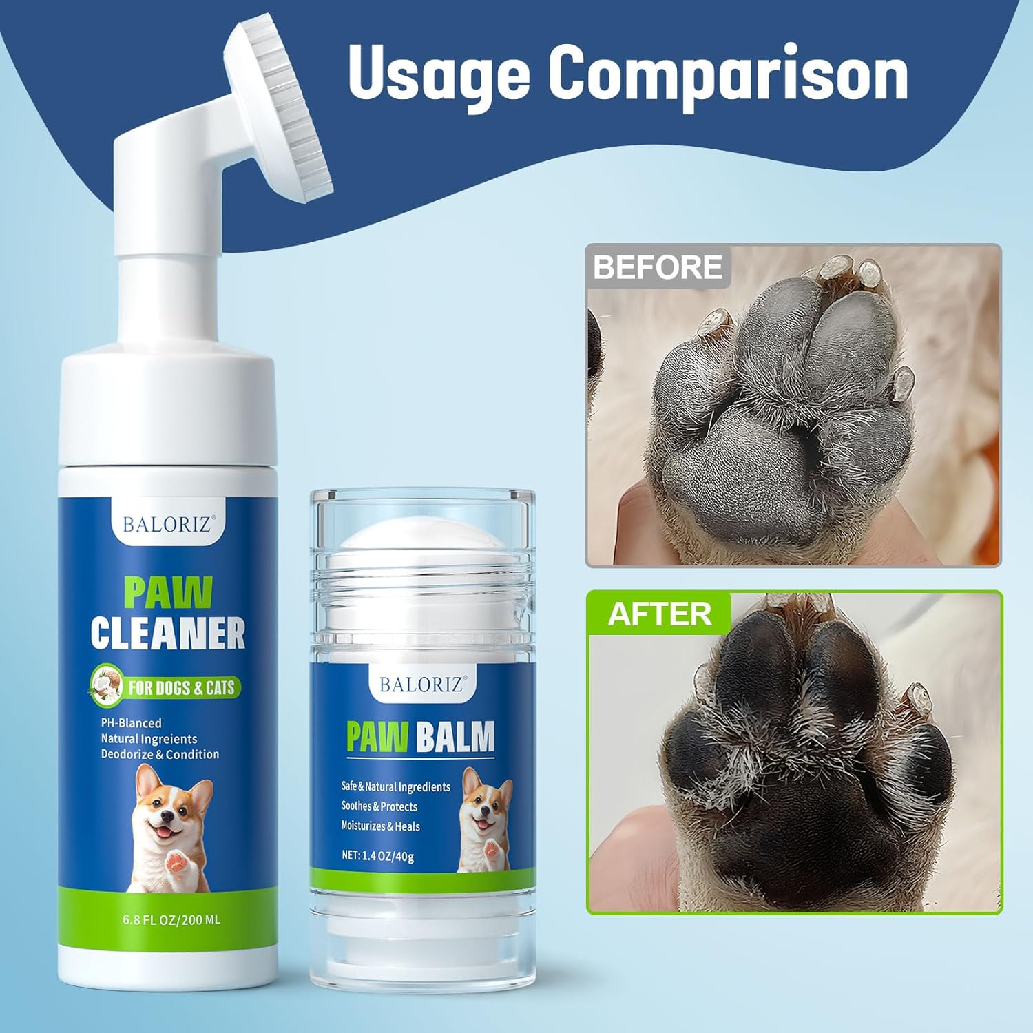 The Dog Paw Care Kit has been an absolute game-changer for keeping my dog’s paws clean and healthy. The no-rinse foam cleanser is incredibly easy to use, making paw-cleaning quick and mess-free after walks or outdoor play. The foam is gentle and effective, removing dirt while being safe for my pet to lick, which is a huge relief.The included paw balm has been fantastic for repairing and restoring my dogâs dry, cracked paw pads, especially during colder months. It absorbs quickly, leaving his paws soft and moisturized without feeling greasy. I also appreciate that itâs made with natural, lick-safe ingredients, ensuring my dogâs safety and comfort.This kit has made paw care simple and effective, and itâs great for regular use to maintain healthy paws and a soft nose. Itâs a must-have for any pet owner who wants to keep their furry friend comfortable and well-groomed!
