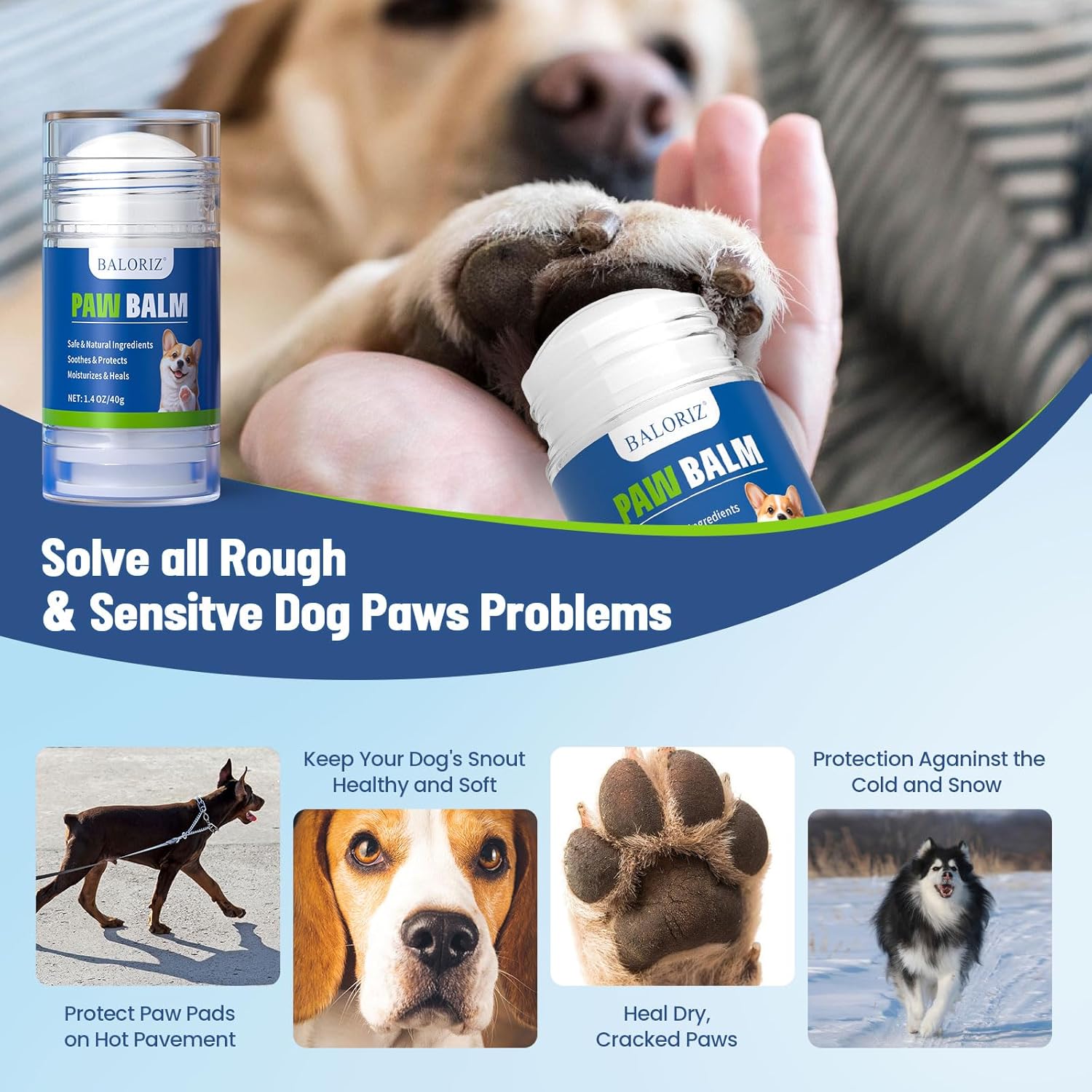 【Dog Paw Balm】– Our paw balm lick-safe paw balm moisturizes, soothes, protects, and heals. Ideal for various conditions like snow, hot pavement, and rough terrains. Apply directly to your pet’s paws, nose, or anywhere needing extra moisture