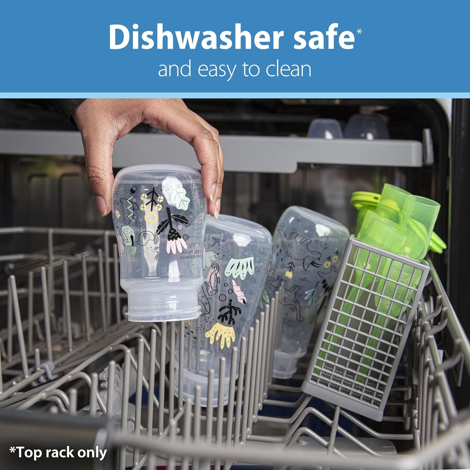 DISHWASHER SAFE. Safe for use in dishwasher (top rack only), electric and microwave sterilizers or boiling water. BPA Free. 5 oz/150 mL, Level 1 Nipple, 2-Pack, 0m+