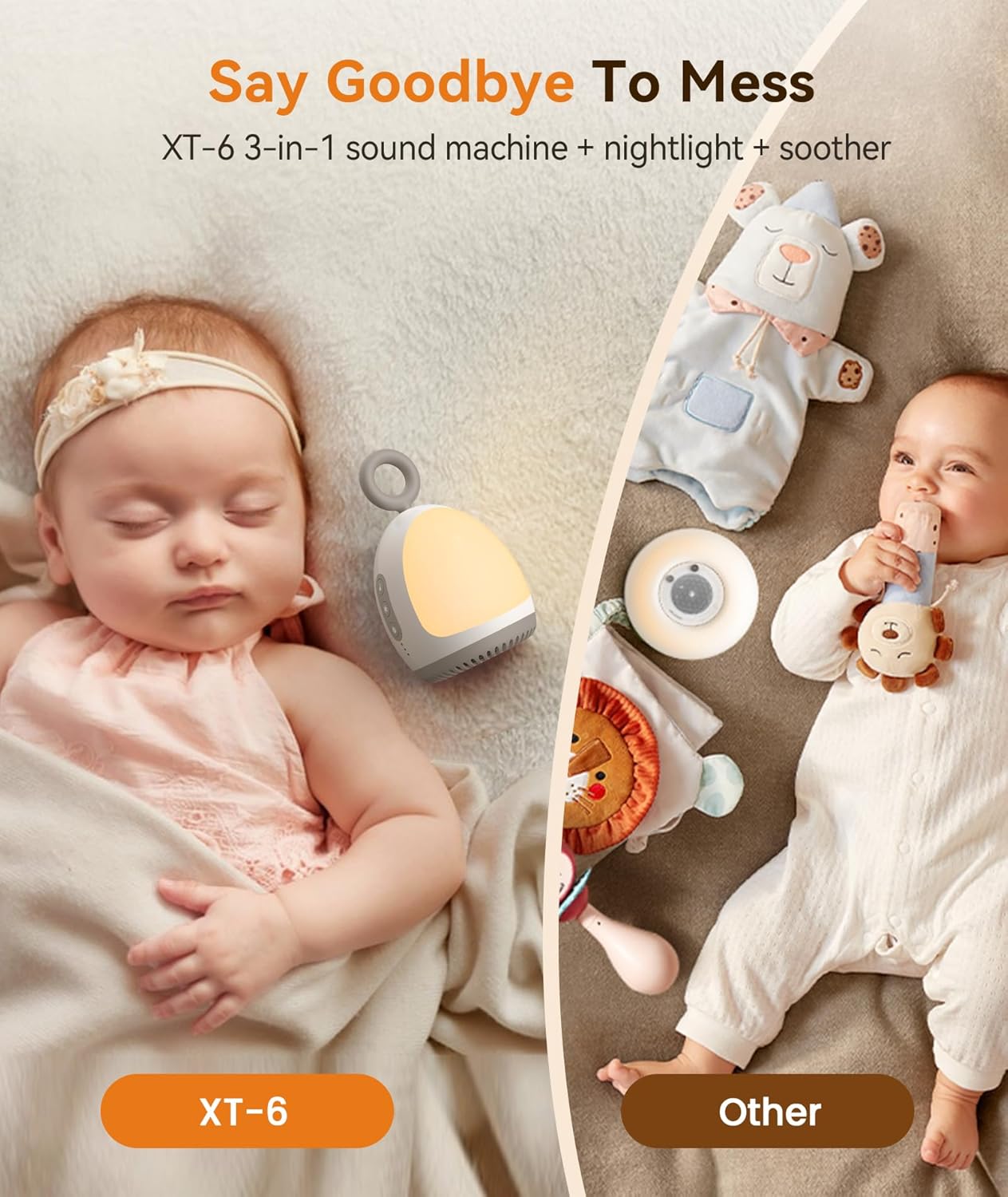 Sound Therapy Machine: Dreamegg XT-6 sound machine for baby adult combines a baby sleep soother, white noise machine and night light in one powerful device. Set preferred brightness, volume, 30/60/90 minute timer (or run continuously), and watch your child drift into a deep sleep.