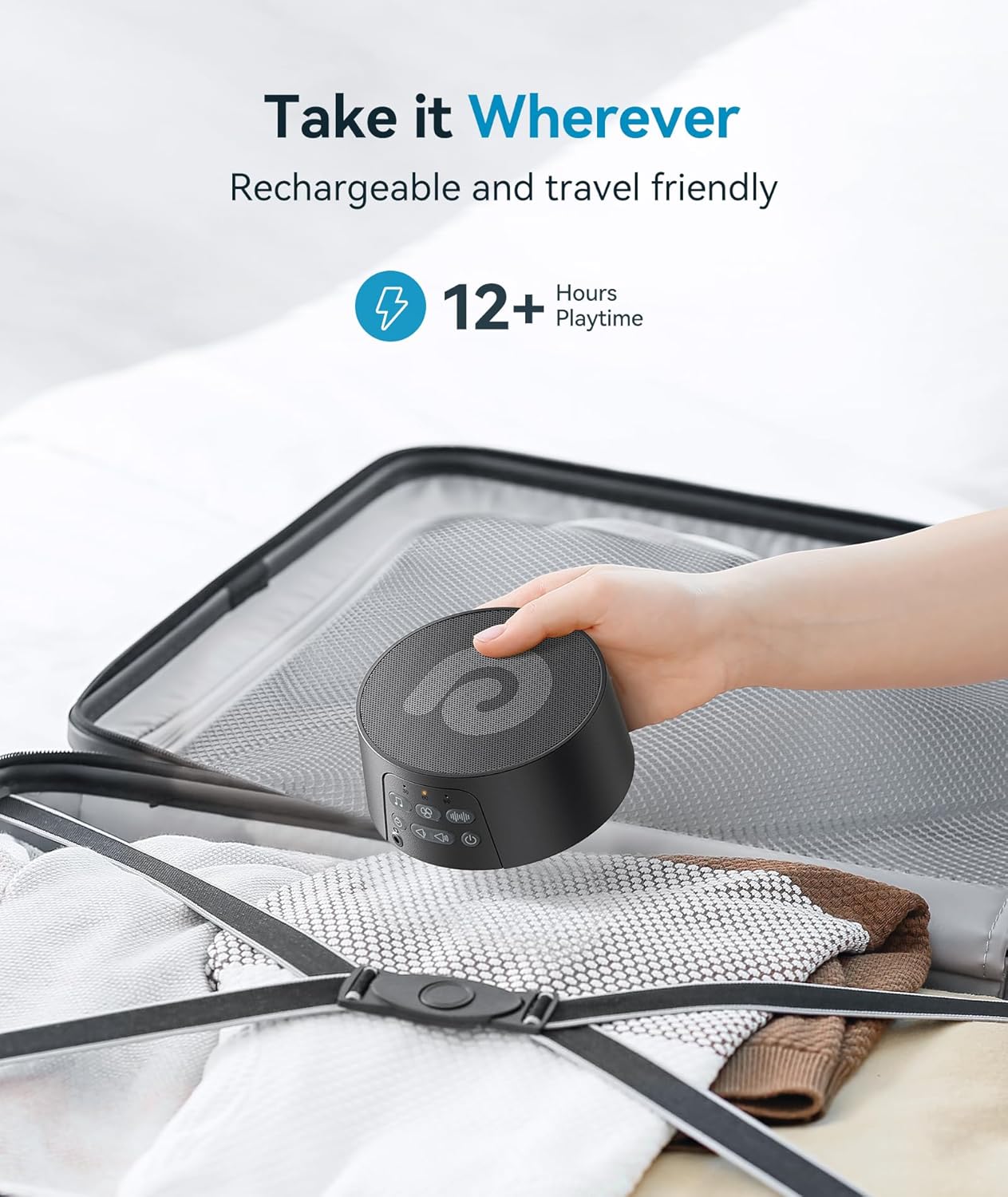 Ultra Portable, Perfect Travel Buddy: We listen to our customers’ feedback. Plug it into a wall outlet or take it on the go with fully charged. This cordless white noise sound machine for adults has rechargeable 1200mAh battery for 12 hours continuously running on a single charge. Besides, the sound machine for sleeping also comes with a convenient wall plug and USB cable for electrical outlets or recharging. No worry at all about not sleeping well while you travel.