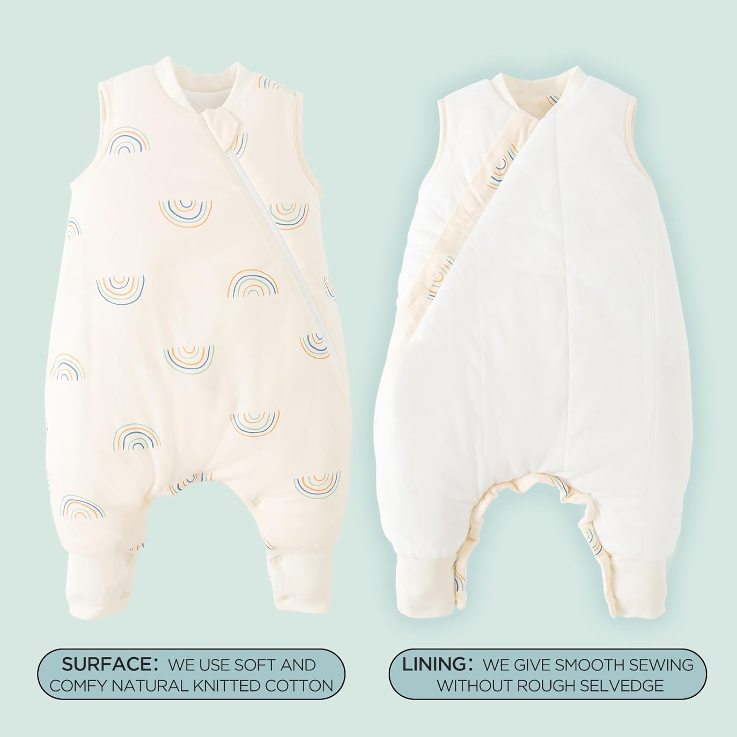 SIZES AVAILABLE – Please refer to our size chart carefully before you order our sleep sack. Extra Small is for 6-12 Months, Small is for 12-24 Months, Medium is for 24-36 Months, Large is for 36-48 Months. This sleep sack with legs is certified as TOG 1.5, suitable for nursery temperatures 60.8°F- 71.6°F.