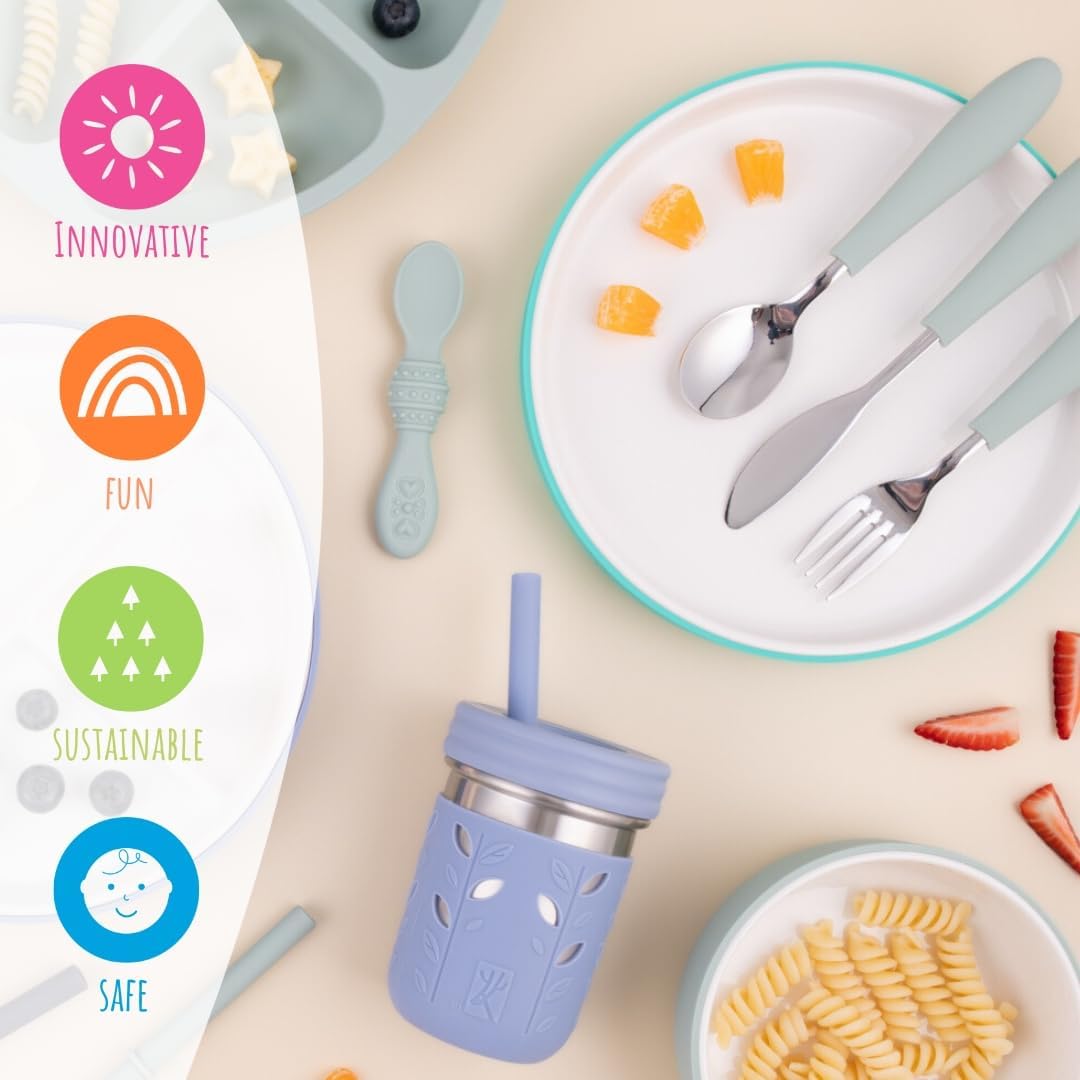 I love the upscale little kid plates with the option of the silicon sleeves to keep a plate in place or protect it if it falls. The straight sides make it so much easier to scoop food onto utensils. Highly recommended!