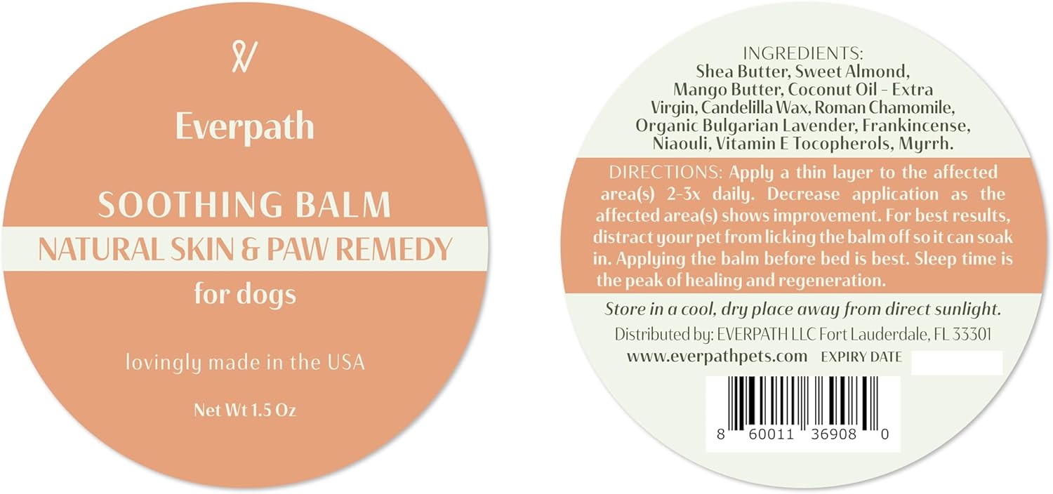 Everpath 2024 Upgraded Skin & Paw Soothing Balm for Dogs – 1.5 Ounces | USA Made | Soothes Dry and Rough Skin | Relief for Cracked and Chapped Paws | Moisturizes Paws | Natural Solution for Pets