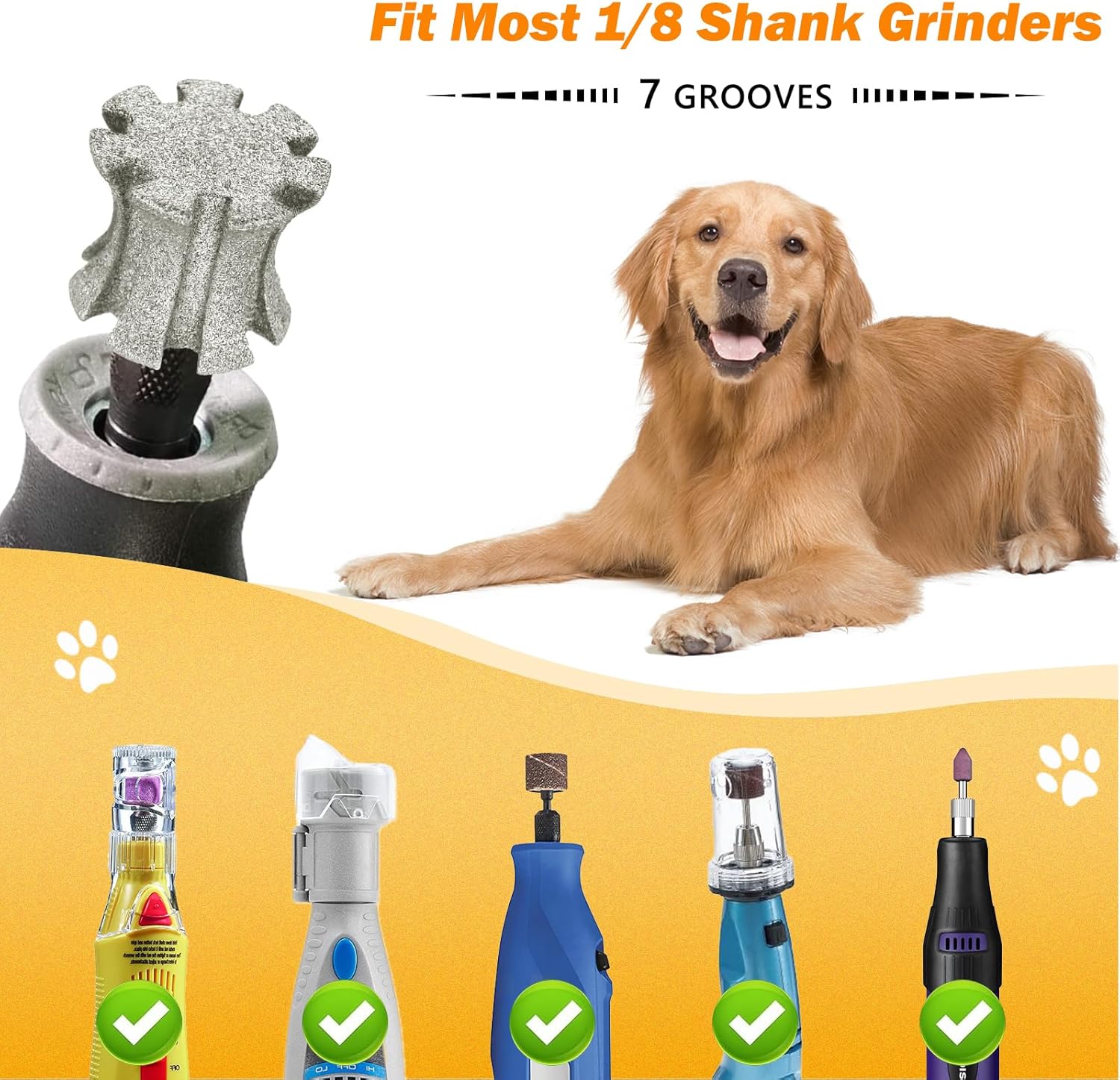 Here’s a review of the Anti-Clogging Pet Nail Grinder Bit Sawtooth Tip:Design and Build Quality:The Anti-Clogging Pet Nail Grinder Bit features a sawtooth tip design and is crafted from fast-cooling diamond material. This design ensures effective and safe nail grinding for dogs of various sizes, including small, medium, large, and anxious dogs.Compatibility and Ease of Use:It is designed to fit 1/8″ Dremel rotary tools and is compatible with many other brands as well. This universal compatibility makes it convenient for pet owners who already own rotary tools, eliminating the need for additional equipment.Functionality and Performance:The sawtooth tip design helps prevent clogging during use, ensuring a smooth grinding experience without interruptions. The diamond material enhances durability and efficiency, allowing for precise nail grooming while minimizing the risk of over-grinding or discomfort for the pet.Cooling Mechanism:The fast-cooling feature of the diamond material helps maintain a comfortable temperature during prolonged use, which is beneficial for both the pet and the operator. It prevents overheating, ensuring safety and comfort throughout the grooming session.Application and Versatility:Ideal for both professional groomers and pet owners, this grinder bit is versatile enough to handle various nail sizes and types. It provides a gentle and effective solution for keeping dogs’ nails trimmed and maintained without the stress and anxiety often associated with traditional nail clippers.User Feedback:Users appreciate the grinder bit’s effectiveness in smoothly grinding down nails without causing discomfort or distress to their pets. The anti-clogging feature and diamond material are commonly praised for their durability and efficiency in pet grooming tasks.Value for Money:Considering its durable diamond construction, anti-clogging design, and compatibility with multiple rotary tools, the Anti-Clogging Pet Nail Grinder Bit offers excellent value for money. It provides a cost-effective solution for at-home pet grooming needs while ensuring professional-quality results.Conclusion:Overall, the Anti-Clogging Pet Nail Grinder Bit Sawtooth Tip is highly recommended for pet owners looking to maintain their dogs’ nails comfortably and safely. Its durable construction, effective grinding performance, and compatibility with popular rotary tools make it a practical choice for achieving well-groomed nails for dogs of all sizes, including those prone to anxiety during grooming sessions.
