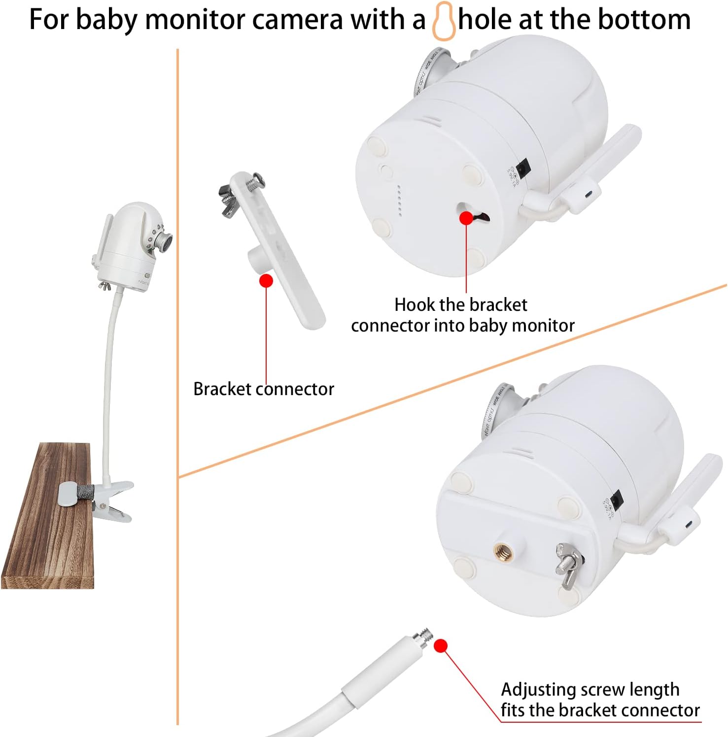 MOUNT ANYWHERE: Featuring an adjustable Clip clamp varying from 0 to 2 inches,the clip holder can be mounted on crib, bed, shelf, furniture frames, windows, pole etc. anywhere that can be clamped, provides your baby monitor camera plenty of mounting options.