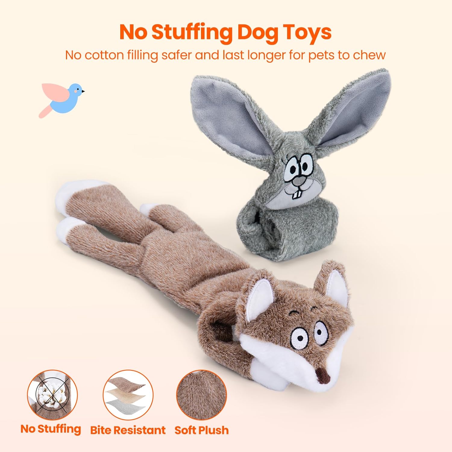HGB Squeaky Dog Toys, No Stuffing Crinkle Dog Toys for Large Medium Small Dogs, Plush Dog Toys to Keep Them Busy, Dog Chew Toys for Puppy Teething, Pet Toys, 2 Pack