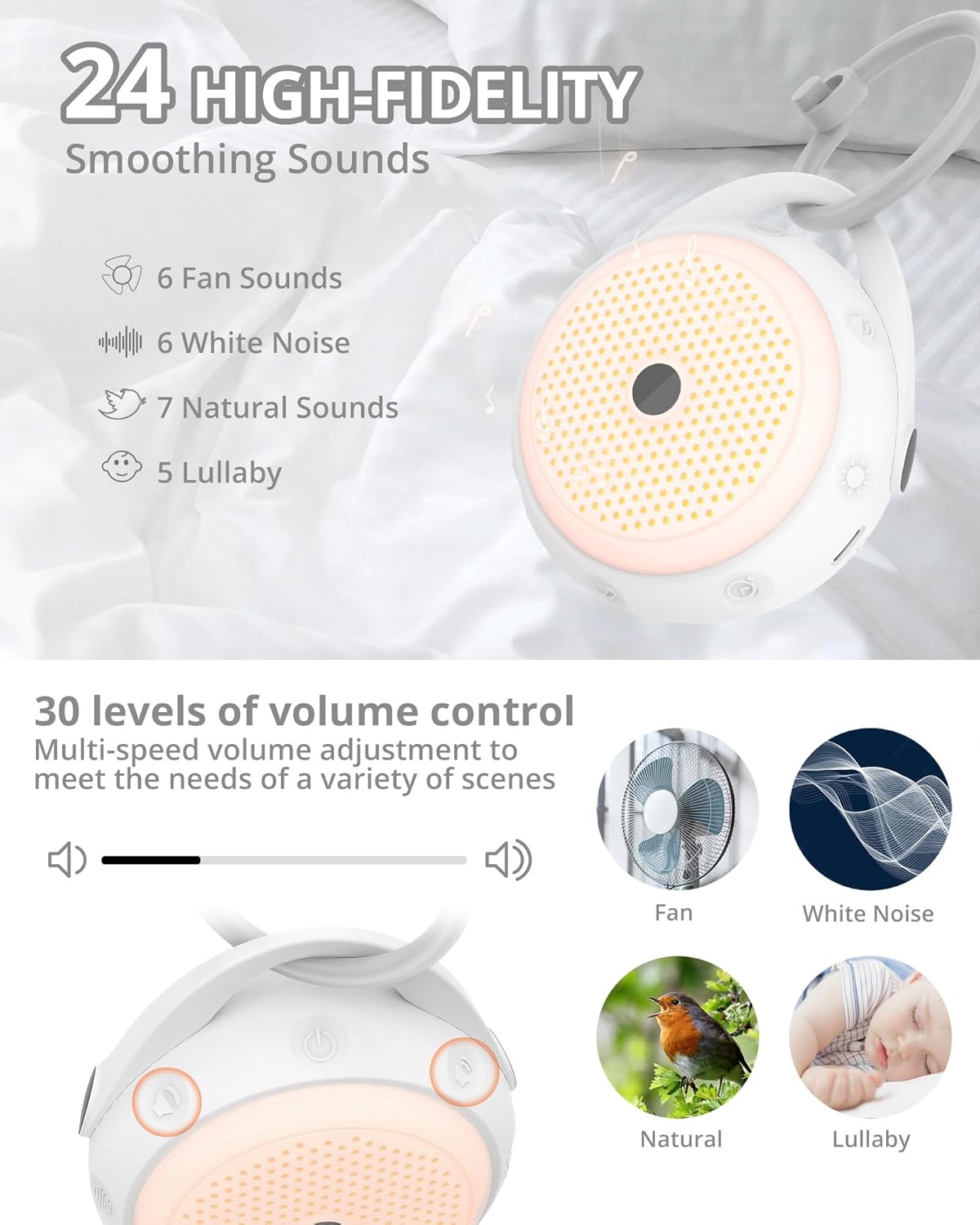 HOMGEN Portable White Noise Machine Baby Rechargeable Warm Light White Noise Baby Gifts Sleep Sound Machine Supports /24 Soothing Sounds/Endurance 20h+/7 Night Lights/Battery Warning/for Baby Sleep