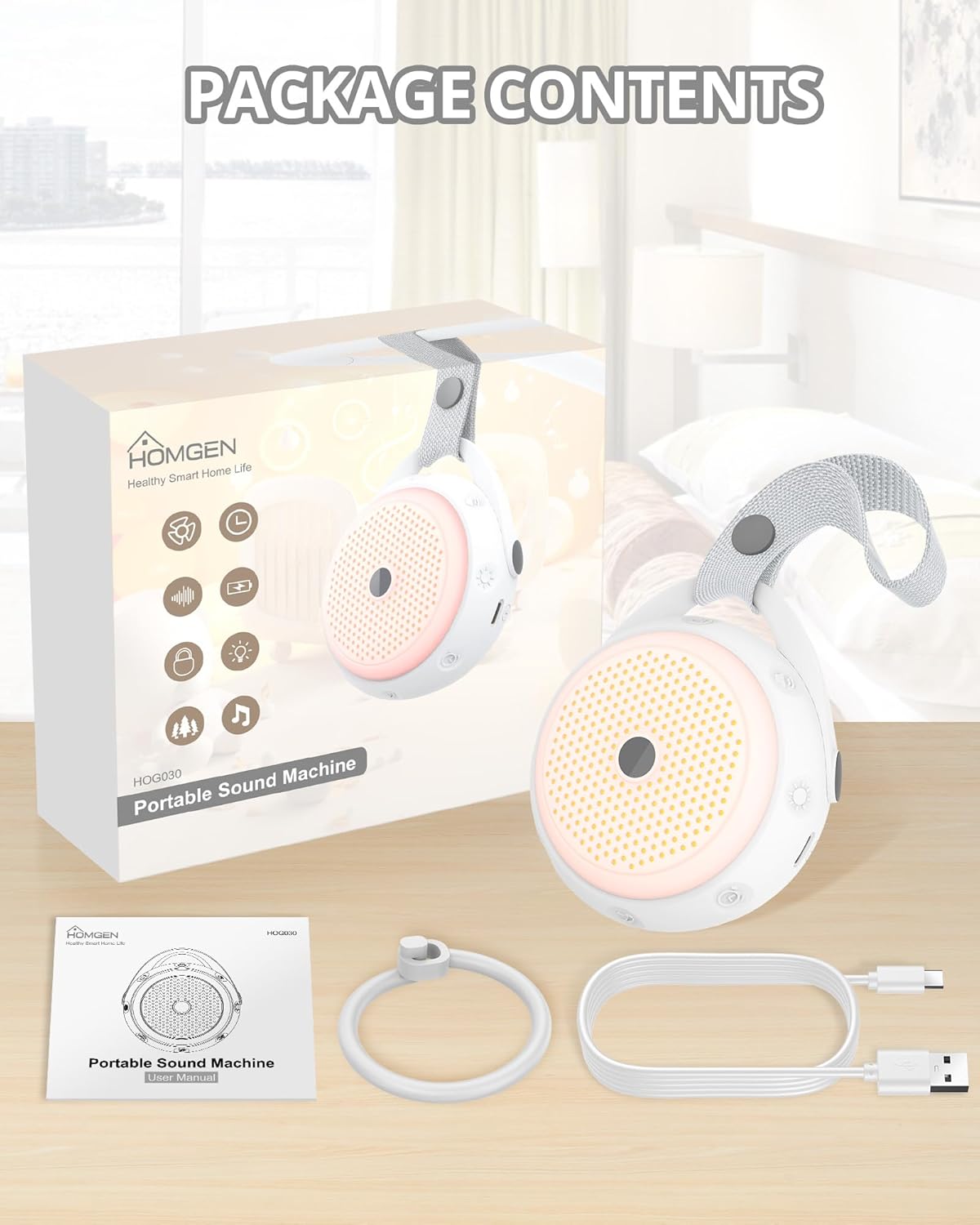 *𝐇𝐎𝐌𝐆𝐄𝐍 𝐏𝐨𝐫𝐭𝐚𝐛𝐥𝐞 𝟐𝟒 𝐒𝐨𝐨𝐭𝐡𝐢𝐧𝐠 𝐒𝐨𝐮𝐧𝐝 𝐌𝐚𝐜𝐡𝐢𝐧𝐞*—:Our HOMGEN Protable Baby White Noise Machine with 4 Types of Sounds: 6 Fan Sounds,6 White Noises, 7 Nature Soundsand 5 Baby Soothing Sounds Satisfy your Need for Sounds. Better for Soothe Your Baby’s Emotions and Easy to Fall Asleep.