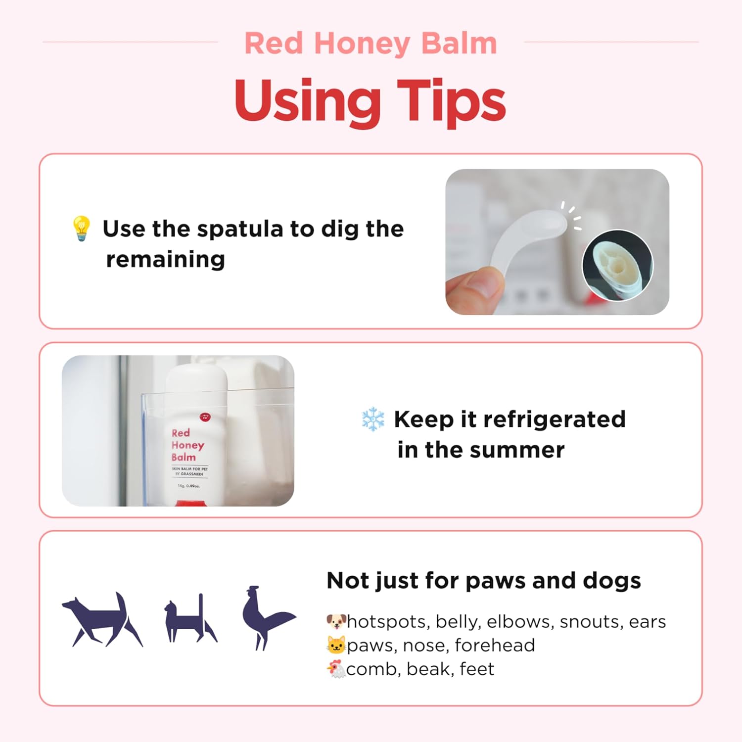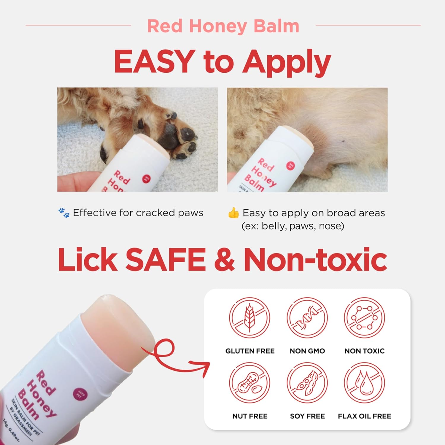 Easy to Apply—The stick-type package makes it easy to apply to large and low-hair areas of skin, such as the belly, back, bum, or paw. Compared to other brands’ products, Red Honey Balm is convenient because you don’t need to use your finger to apply the product. It’s super easy to apply it before or after outdoor activities.