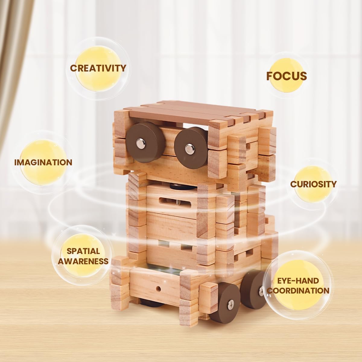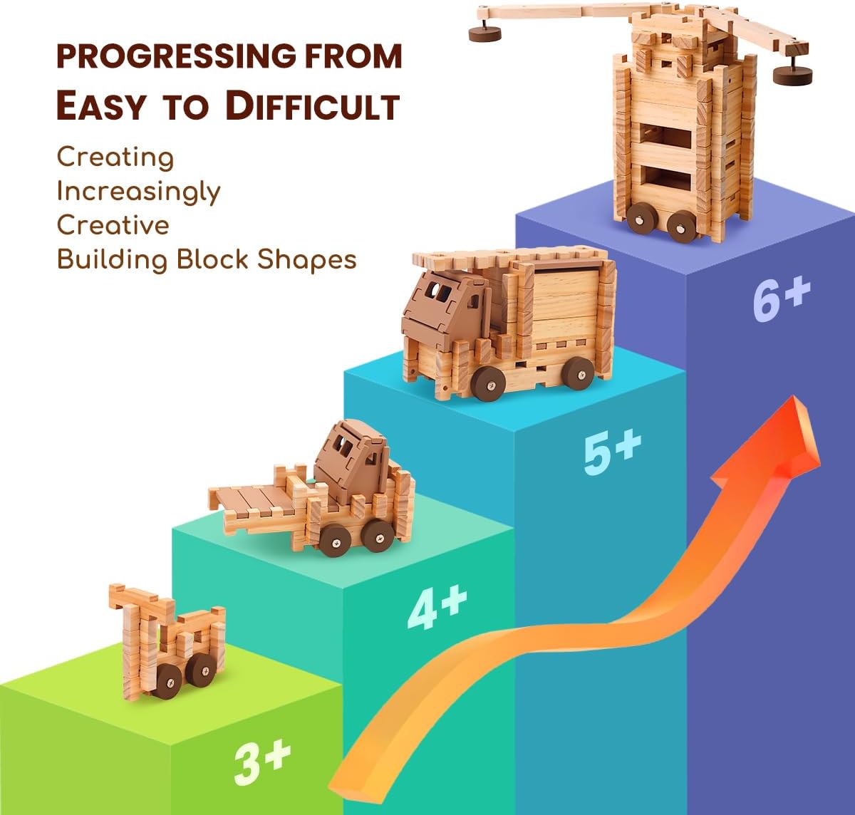 Cultural Inspiration:Inspired by the unique recessed designs of traditional Chinese architecture, this wooden blocks allows children to attempt building vehicles for different purposes, including bicycles, trucks, fire engines, and lunar mobile stations. This not only stimulates creativity but also helps children understand the functions and structures of vehicles in different scenarios, enriching their life experiences and imagination.