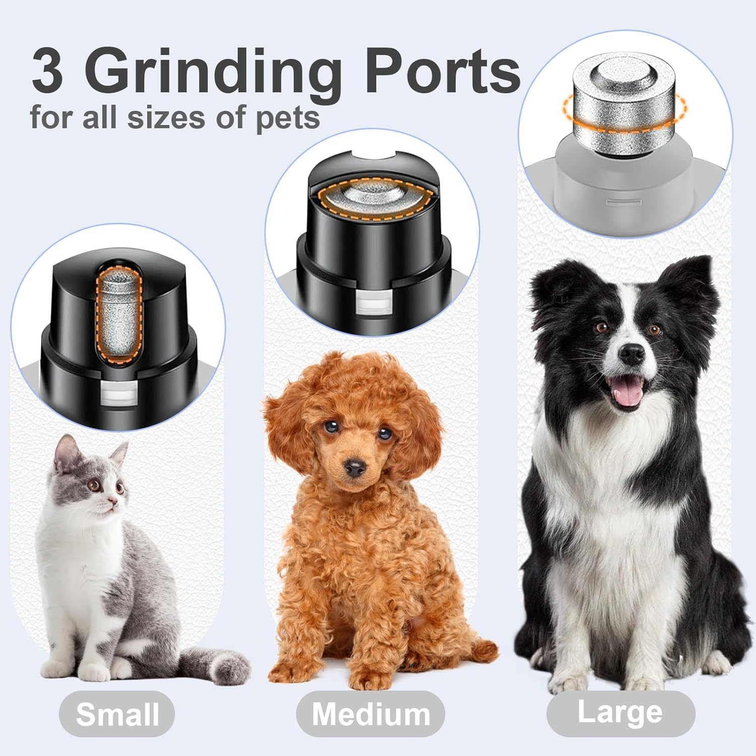 🐶【Dog Nail Grinder】 Diamond head with 3 grinding ports can support any stick of nail grinding for small, medium and large pets. Cordless LED design with 2 speeds, illuminates the blood line and quickly locates the toenail, to avoid hurting your lovely pets.