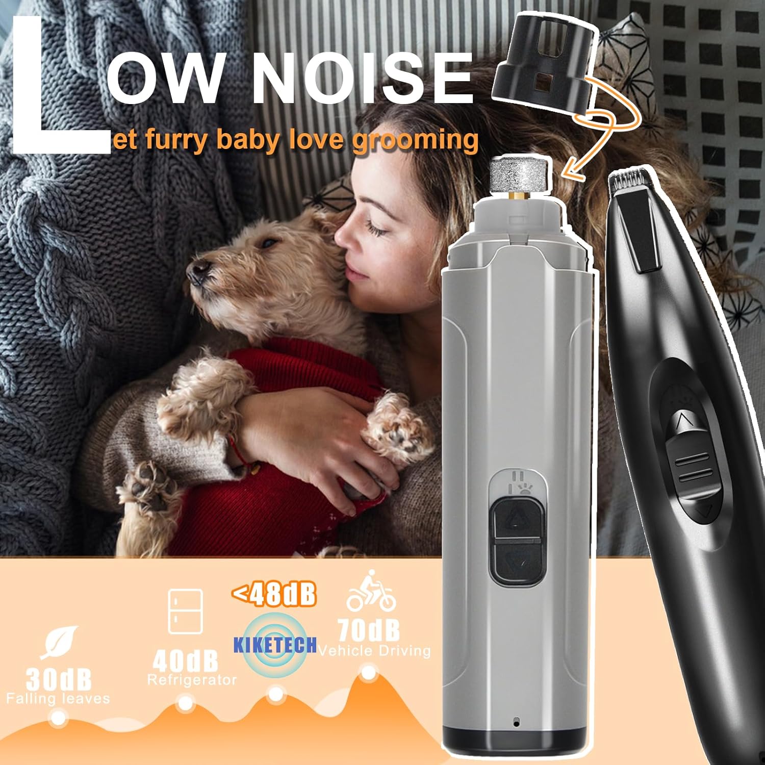 KIKETECH Dog Paw Trimmer Clipper – LED Nail Trimmer for Dogs, Quiet Dog Nail Grinder, Rechargeable Pet Clipper for Grooming, 3 in 1 Black
