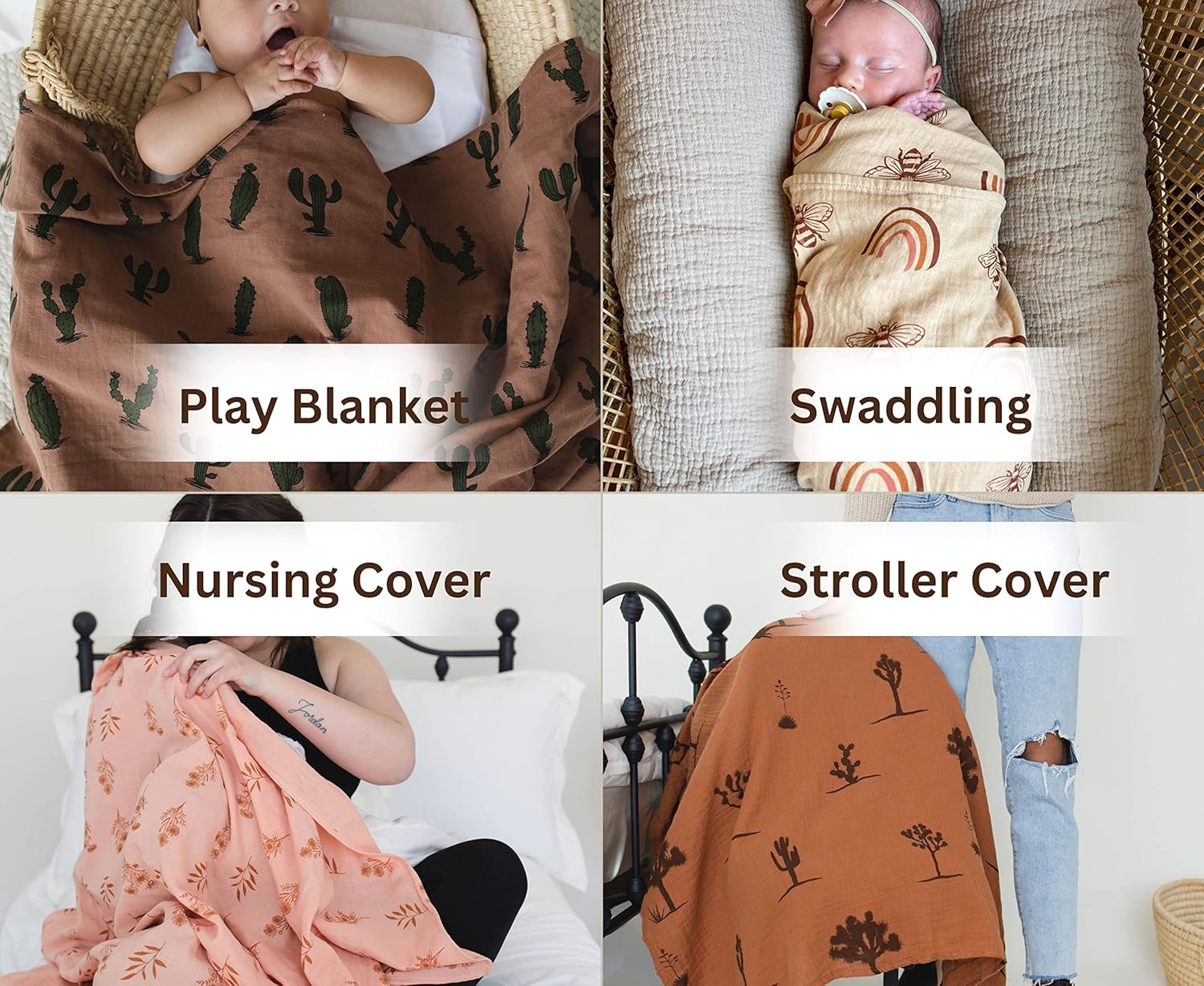 10 reviews for Leyl&Ari Muslin Swaddle Blanket 100% Organic Cotton Lightweight Receiving Wrap for Infant & Newborn (Cactus, 47X47)