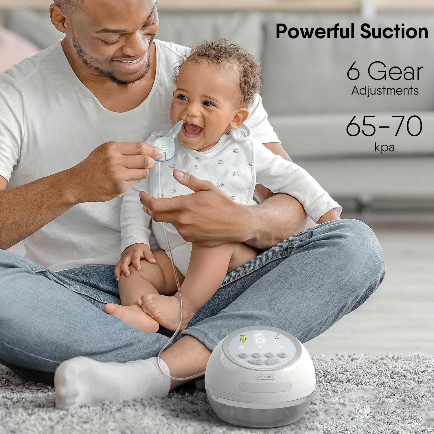Effective Suction and 6 Adjustable Levels: Obee Odee Electric Nasal Aspirator for baby boasts highly effective suction designed specifically for your baby’s needs. What sets it apart is the ability to tailor this effective suction with 6 adjustable levels from 65-70kpa(4-6.8L per minutes suction) , ensuring the perfect balance of strength and comfort for your little one. Say goodbye to nasal congestion, and hello to personalized, efficient relief for your baby