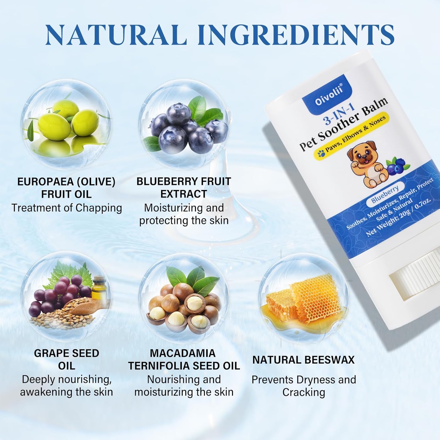I have a Pomeranian who has a very dry nose and very dry pads on his paws that are starting to get cracks. I searched for something that would help soothe his skin and stop the cracking and I found Oivolii 3 in 1 Pet Soother Balm. I applied it 2x daily and and I’m noticing the cracks & dryness are healing very well! It is very safe for pets and and I am very happy so far with the results.