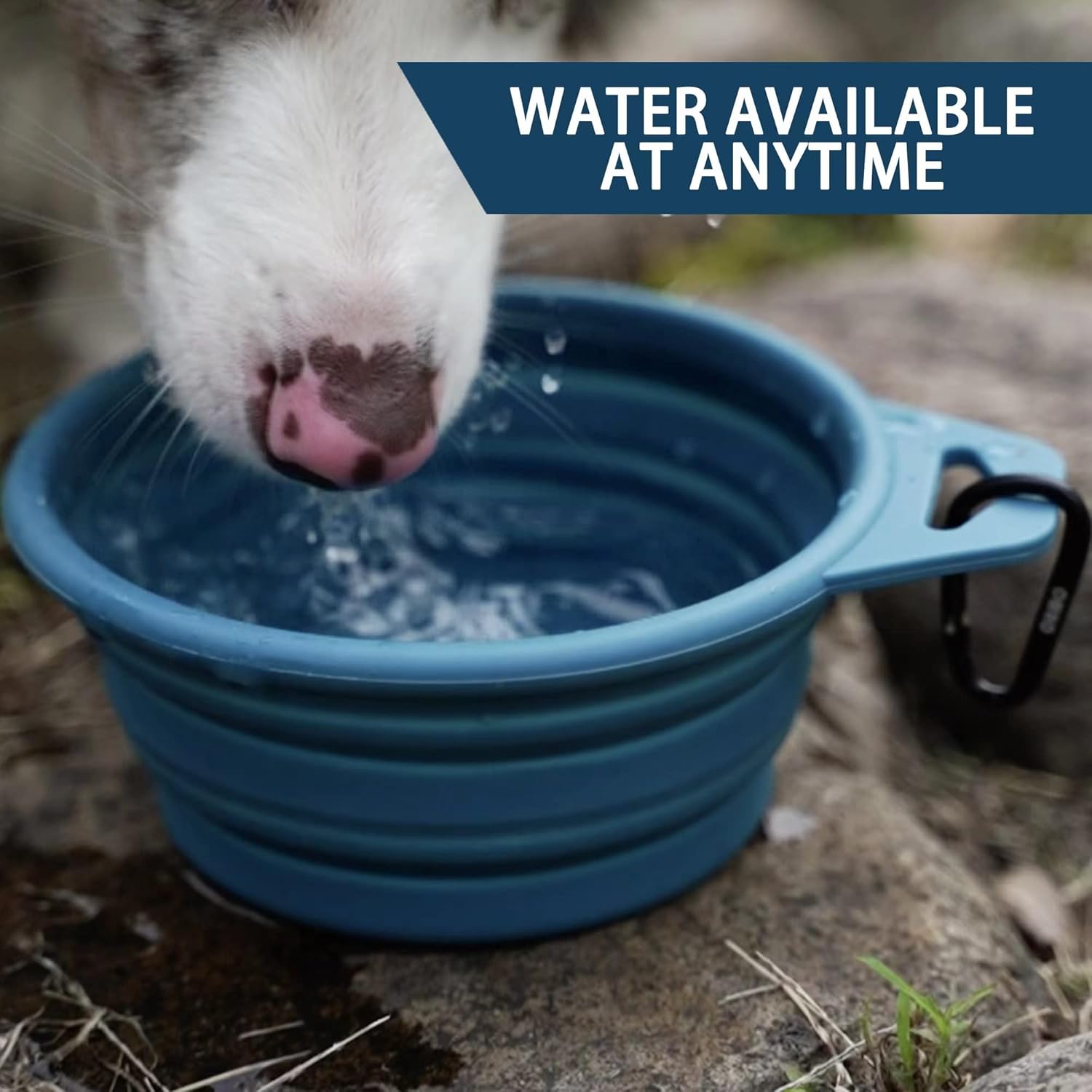 Quantity: 2 pieces Portability and Practicality: Collapsible dog bowl can be completely flattened and easily stowed in any travel bag. Foldable dog travel bowls perfect for walking and hiking with our dog. The bowl is large enough, folds and unfolds very easily and the carabiner is large and strong enough to hang on a backpack. Perfect for road trips, hiking, camping, home walks and more. Take it everywhere with you!