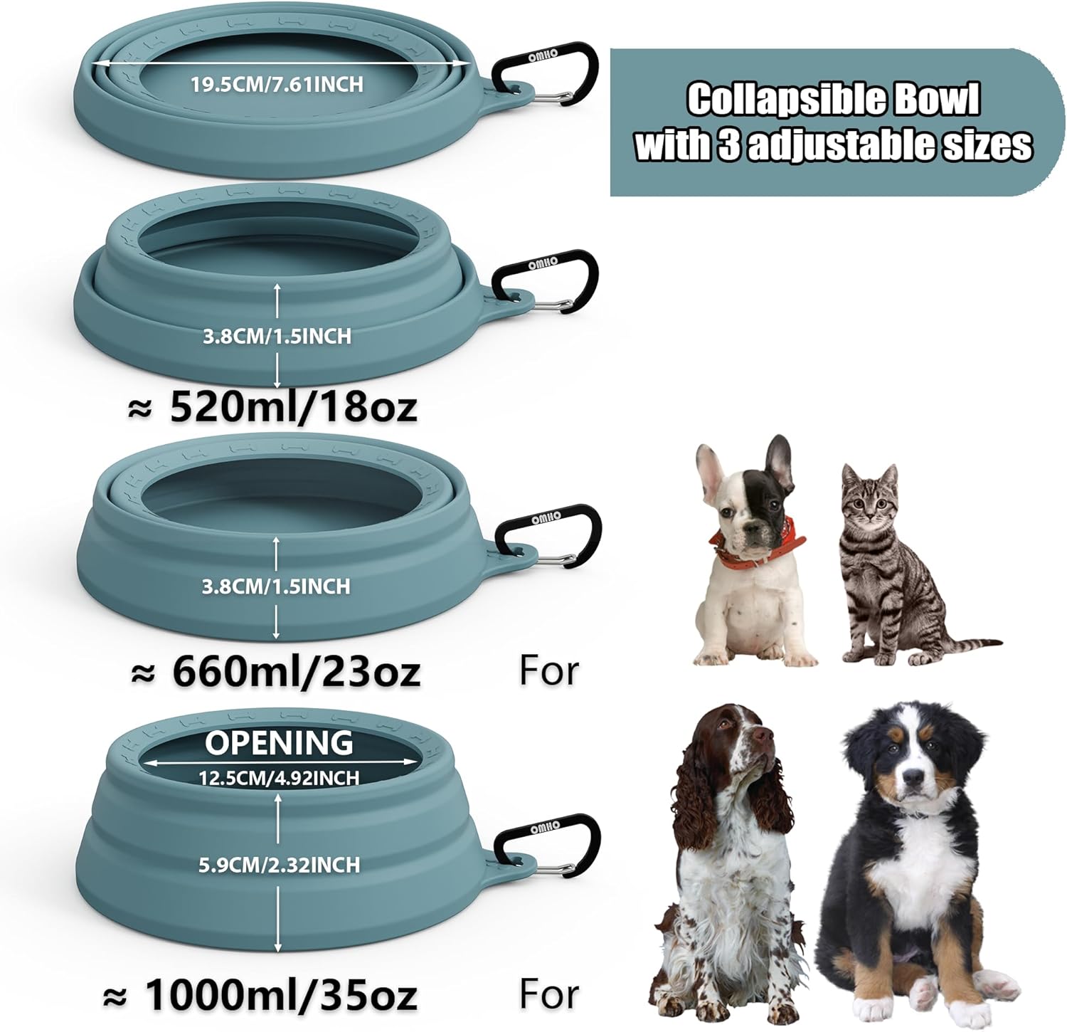 OHMO Spill Proof Collapsible Dog Water Bowl Large 34oz for Cars, No Splash Portable Bowls for Dog Travel, Pet Essentials for Road Trips, Cat Travel Accessories