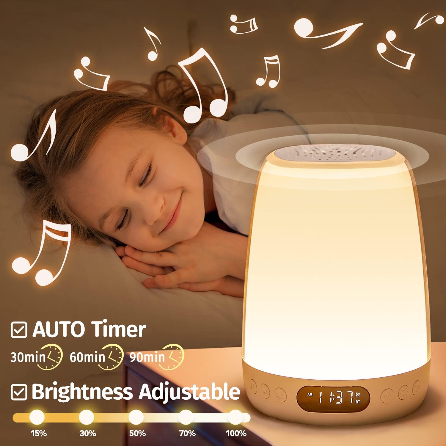 APP/Touch Control+ Bluetooth Speaker +14 White Noise+3000 mAH Rechargeable Night Light + Touch Bedside Lamp + Alarm Clock for Kids