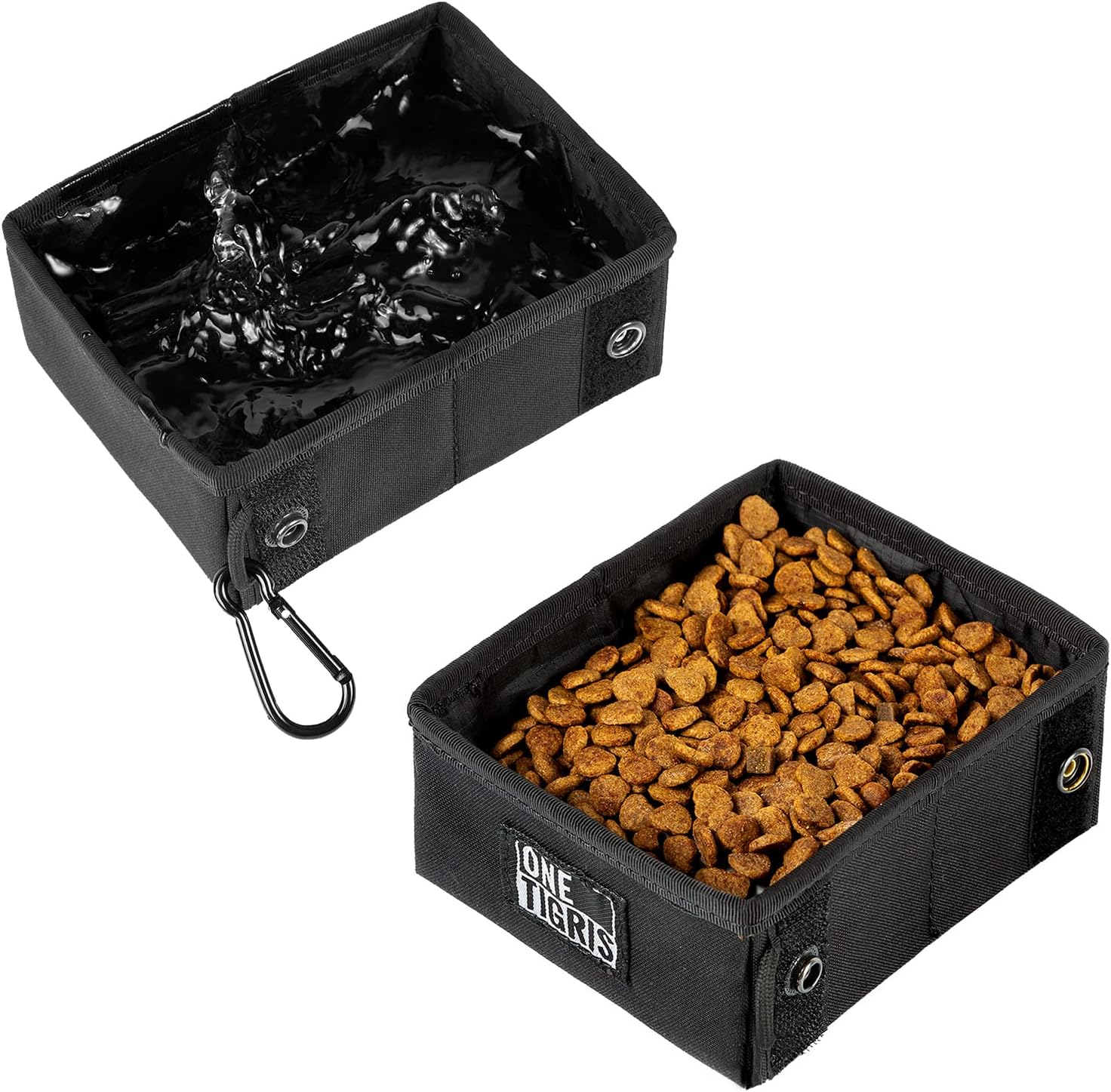 — Specifications — Material: 500D Nylon, UTX Snap-buttons, Aluminum Alloy Carabiner — Dimensions — Folded – 4.3″*2.4″*1″/11cm*6cm*2.5cm Unfolded – 5.5’’*4.3’’*2.4’’/14cm*11cm*6cm Weight: 2.3oz/66g — Package Includes — 1* OneTigris Collapsible Small Dog Bowl