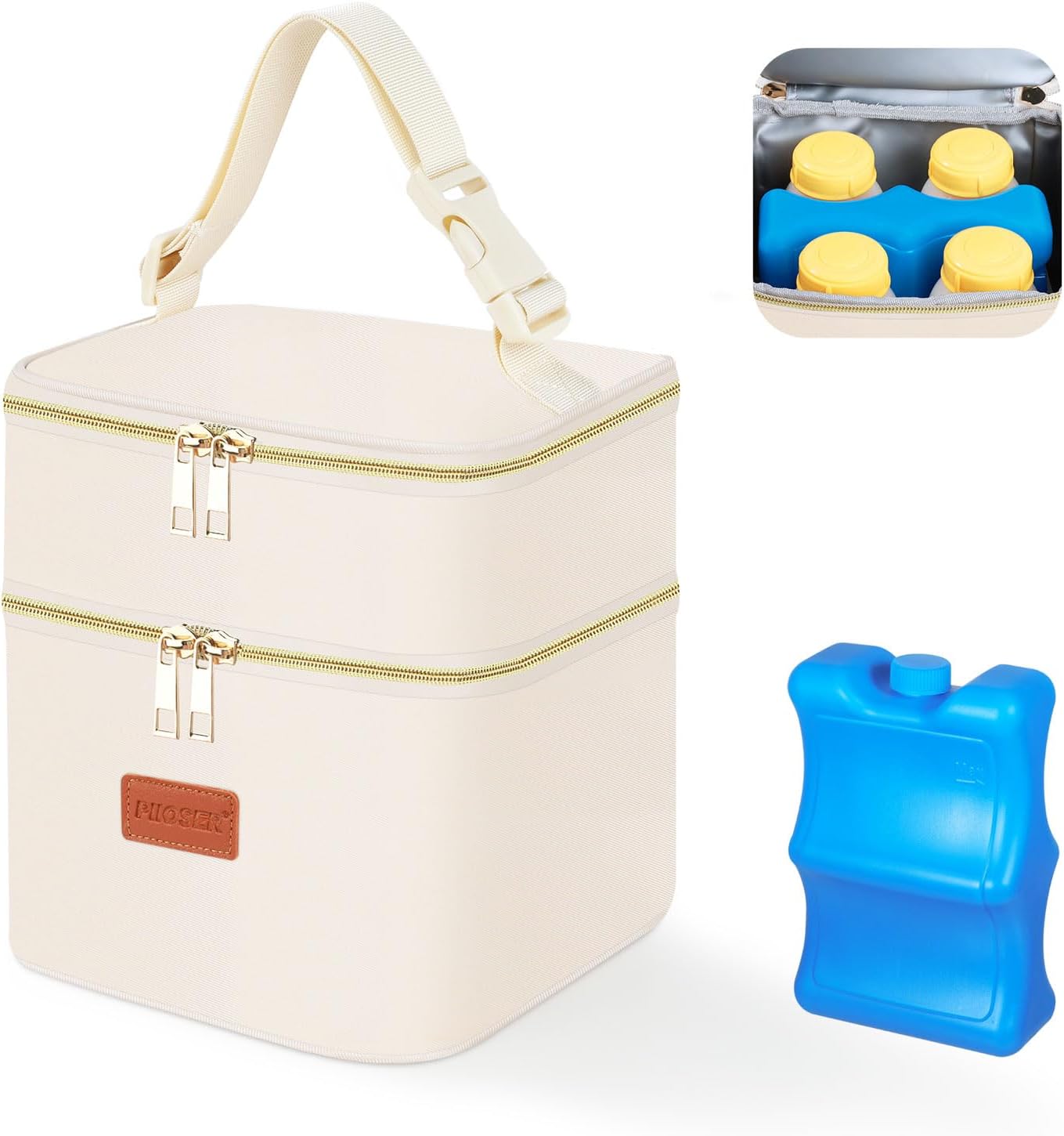 PIIOSER Breast Milk Storage Cooler Bag with Ice Pack, Fits 4 Baby Bottles Up to 5 Ounce, Small Insulated Breastmilk Cooler Travel Bag with Handle Buckle for Nursing & Working Mom Daycare