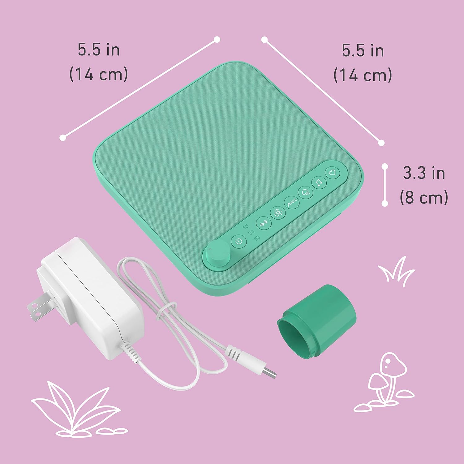 Pure Enrichment PureBaby Sound Machine – All-Natural Sounds Include Lullaby, Heartbeat, White Noise, Fan, Ocean, and Rain, with Auto-Off Timer & USB Charger – Patented Design (Mint Green)