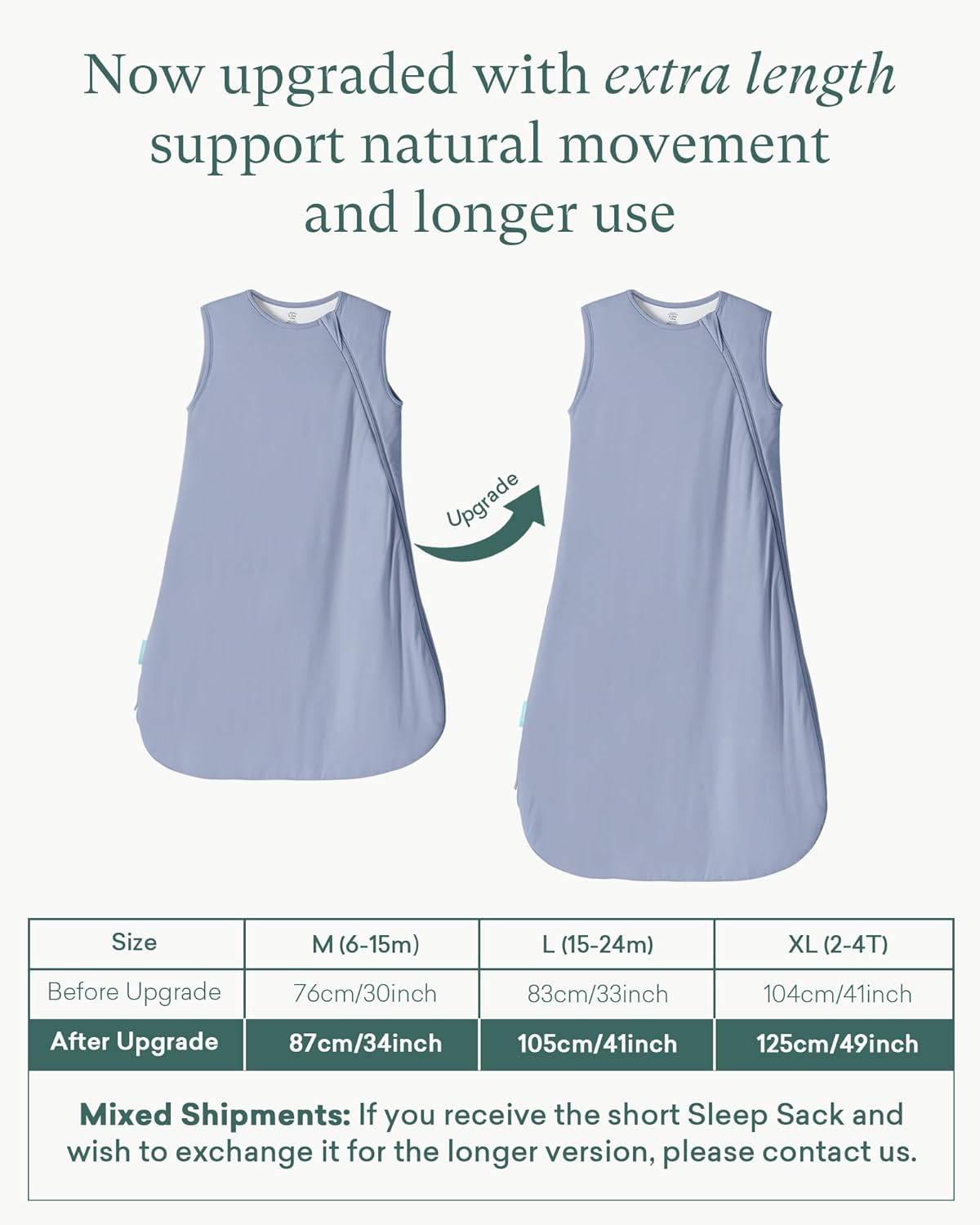 We have purchased 5 or 6 of this brand of sleep sack. We really love how warm they can be (we live in an old house so we use 2.5tog in winter). The material is quality, the zippers are sturdy, and they’ve held up very well with maybe some minor shrinking from the wash+dry. Very soft. Worth the money!We just got another two options. Size 0-3 fits my newborn perfectly. Size 2-4T is much too large for my 2 year old. Please see the photos for reference! My husband is 5’10” and as you can see, this sleep sack covers almost his entire body!! We could not stop laughing at how long it is! Our toddler is around 50th percentile for height and weight, so pretty average, but this would be very unsafe for her to use. Unfortunately we’re returning it, but I’m hoping the next size down (I believe fits up to 18m) will work.