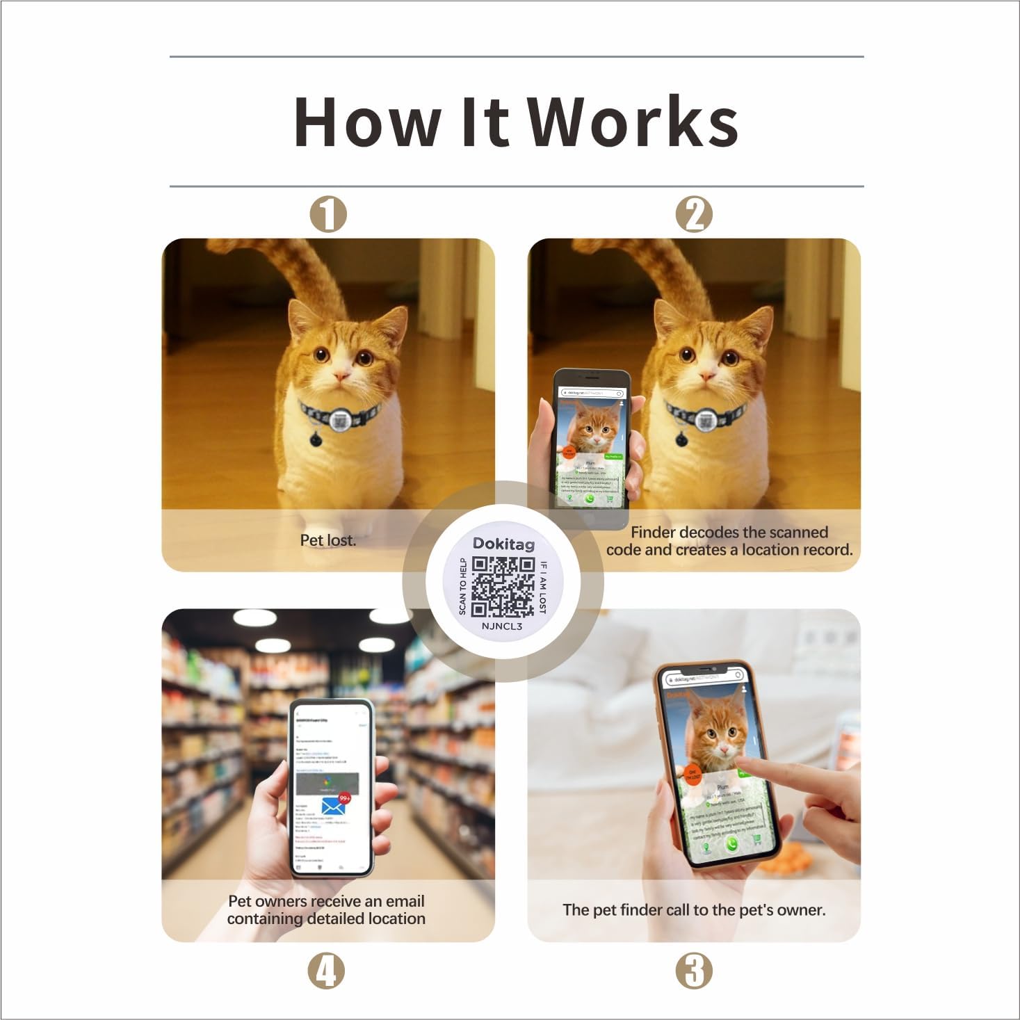 Receive Instant Email:It’s not a GPS tracker, but if your pet is lost and someone finds it and scans the QR code on the tag for PET information, they can send the address to your e-mail or phone to contact you,You’ll find it quickly; quick and easy