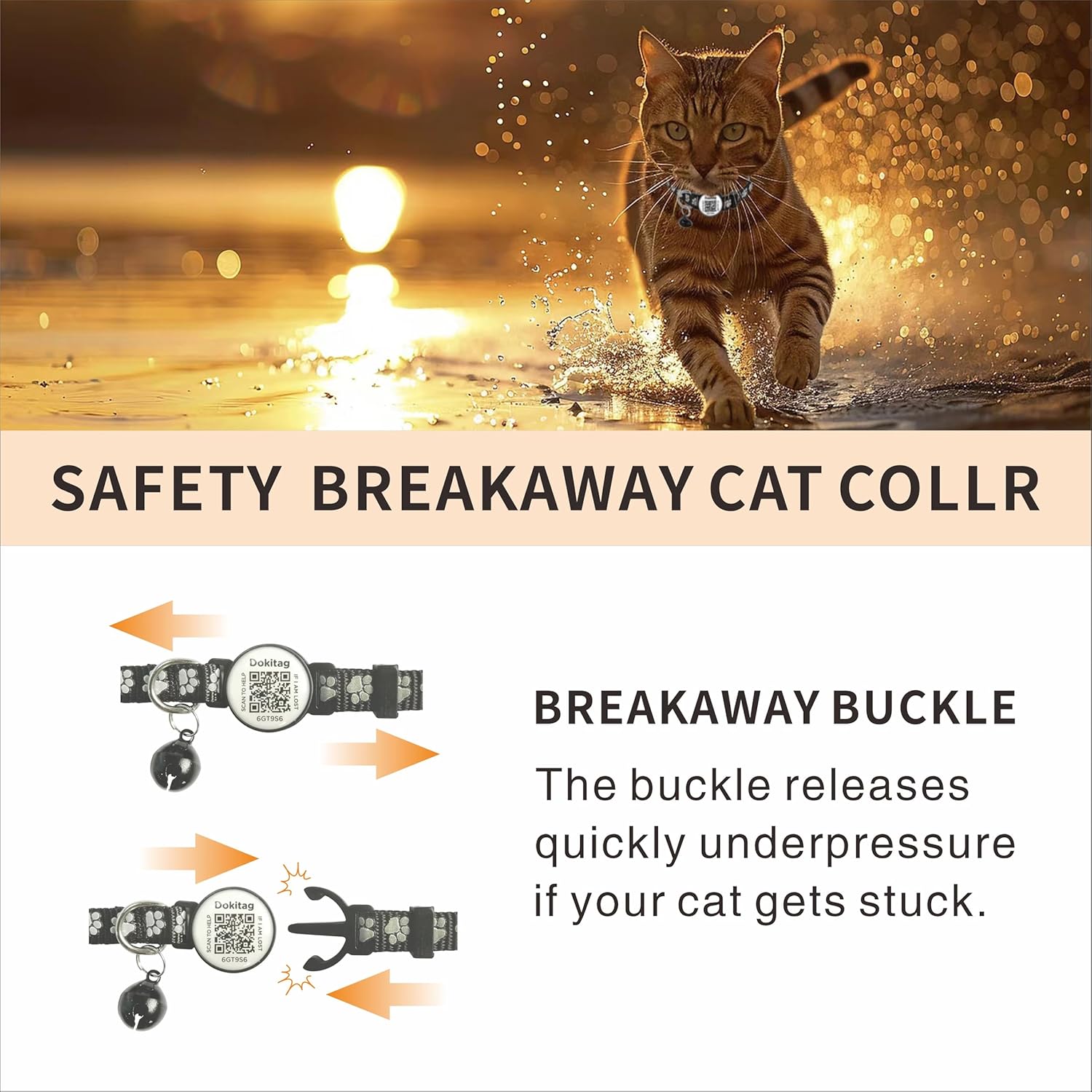 Reflective Cat Collar with QR Code Tag : The design of the reflective cat paw print pattern can improve the visibility of the cat in low light;The difference between this kind of collar and traditional collar is that the design of the safety button with a QR code ID tag, which is beautiful, convenient and practical, no need to wear a separate pet ID tag