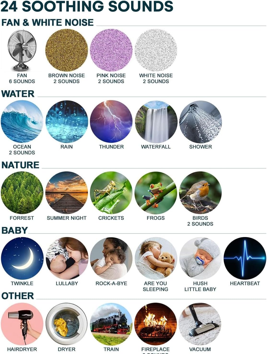 Variety Of Soothing Sounds: Includes 36 relaxing sounds like white noise, lullabies, ocean waves, and rain; perfect for creating a calming sleep environment for babies or adults