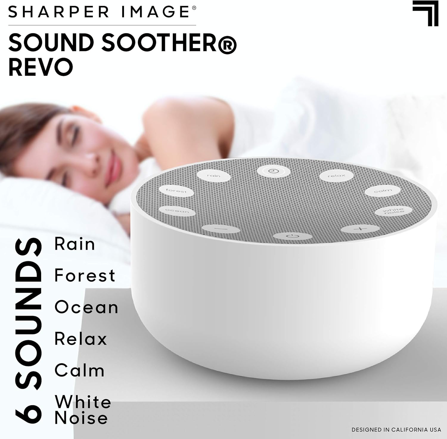 ✔ CALMING NATURE SOUNDS: Close your eyes and quiet you mind to the soothing sounds of nature, white noise, or one the relaxing melodies featured on the Sharper Image Sleep Therapy White Noise Machine.