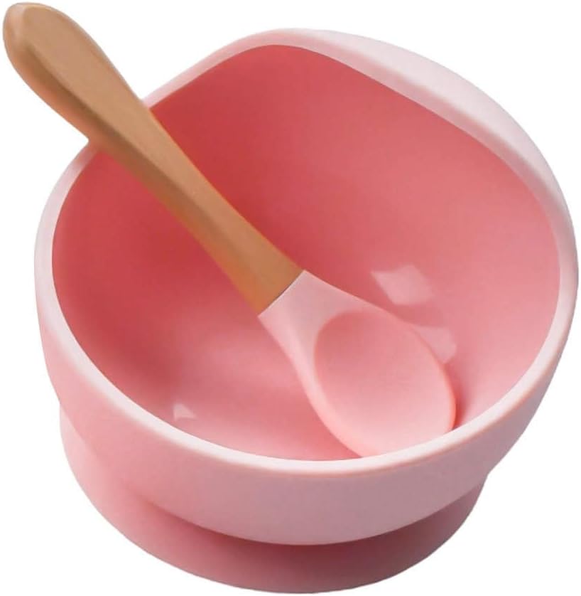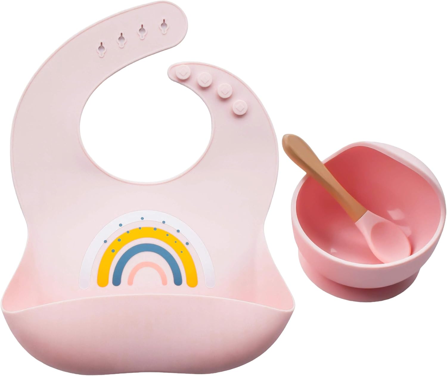 Silicone Rainbow Baby Bibs & Suction Bowl Set: BPA-Free, Adjustable Bib with Large Food Catcher Pocket + Premium Utensils for Babies & Toddlers (6-36 Months), Pink