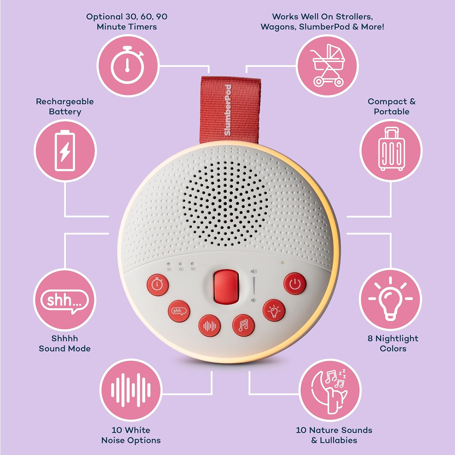 SlumberPod SlumberCalm Portable Sound Machine | White Noise Sound Machine Baby | Shhh Mode | 21 Relaxing Sleep Sounds | Travel Sound Machine | Rechargeable Night Light | Baby Registry Gift