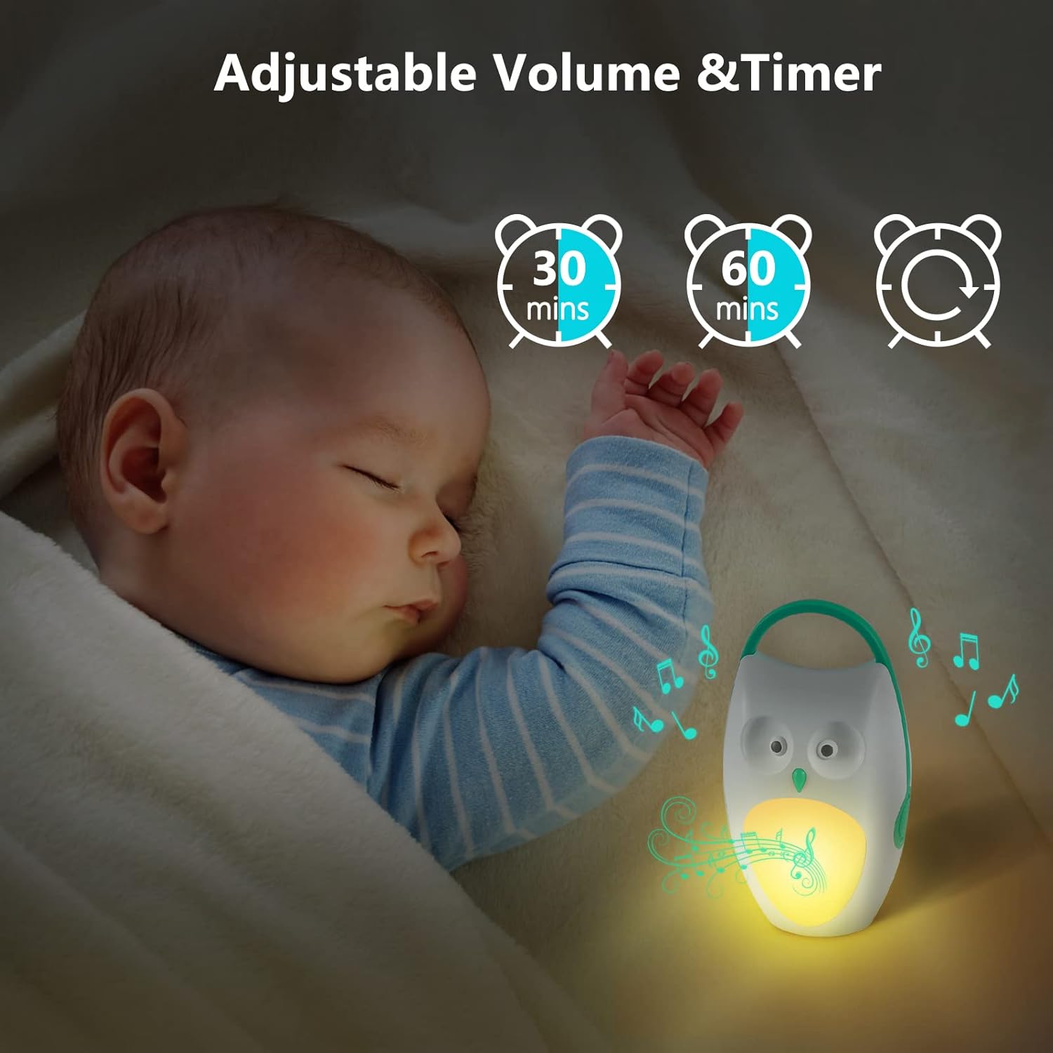 Portable: Small size, perfect for traveling.Soothing Sounds: Lull your baby to sleep.With soft night light