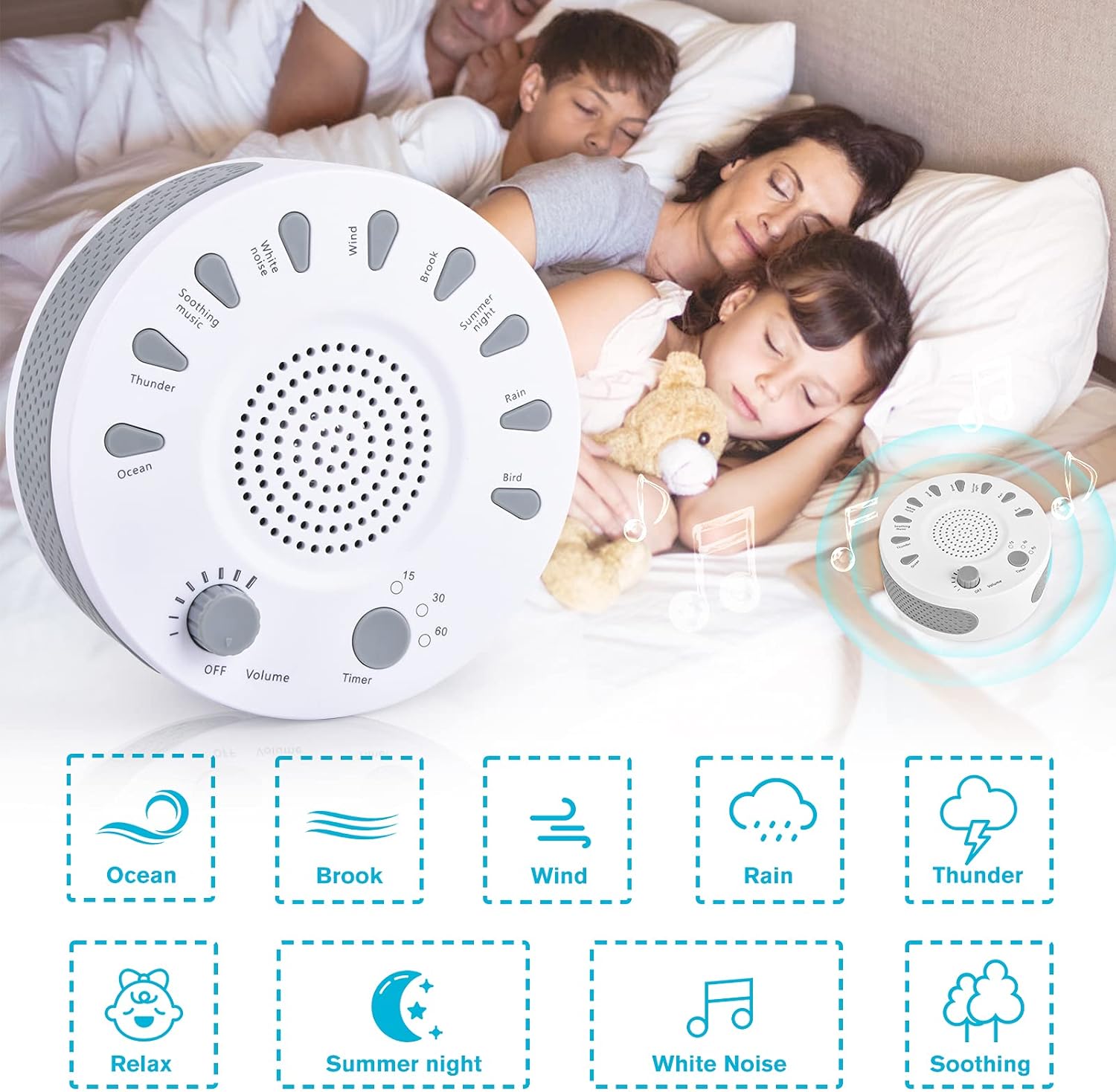White Noise Machine, Portable Sleep Sound Therapy Machine with 3 Timers & 9 Natural Sound Options for Baby Kids Home Office Bedroom Travel Sleep Timer