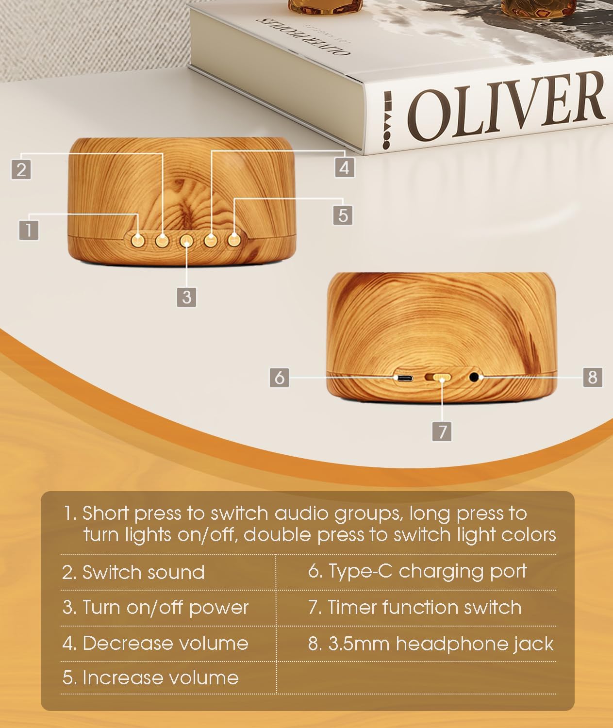 High-Quality Wood Grain🌳✨: Lulia noise machine features a high-quality wood grain design, suitable for placement in various settings such as baby rooms, bedrooms, and living rooms. Not only does it provide a quality sleep experience, but it also serves as a stylish and elegant home decor piece.