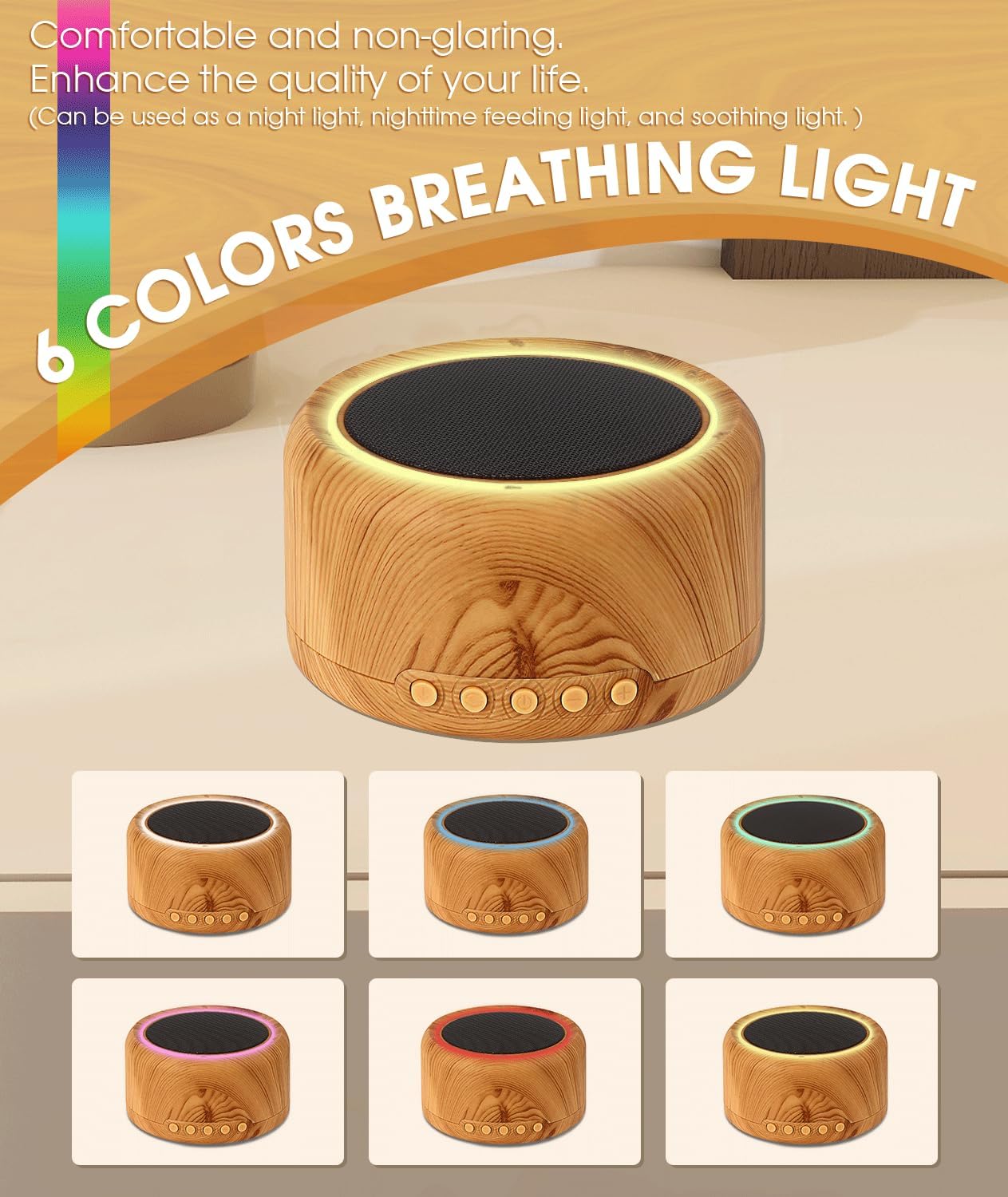 12 reviews for White Noise Machine with 30 Soothing Sounds, 6 Color Breathing Night Lights,Sleep Sound Machine for Baby Kids Adults, Time & Memory Function, Portable Sound Machine, Rechargeable Battery,Wood Grain